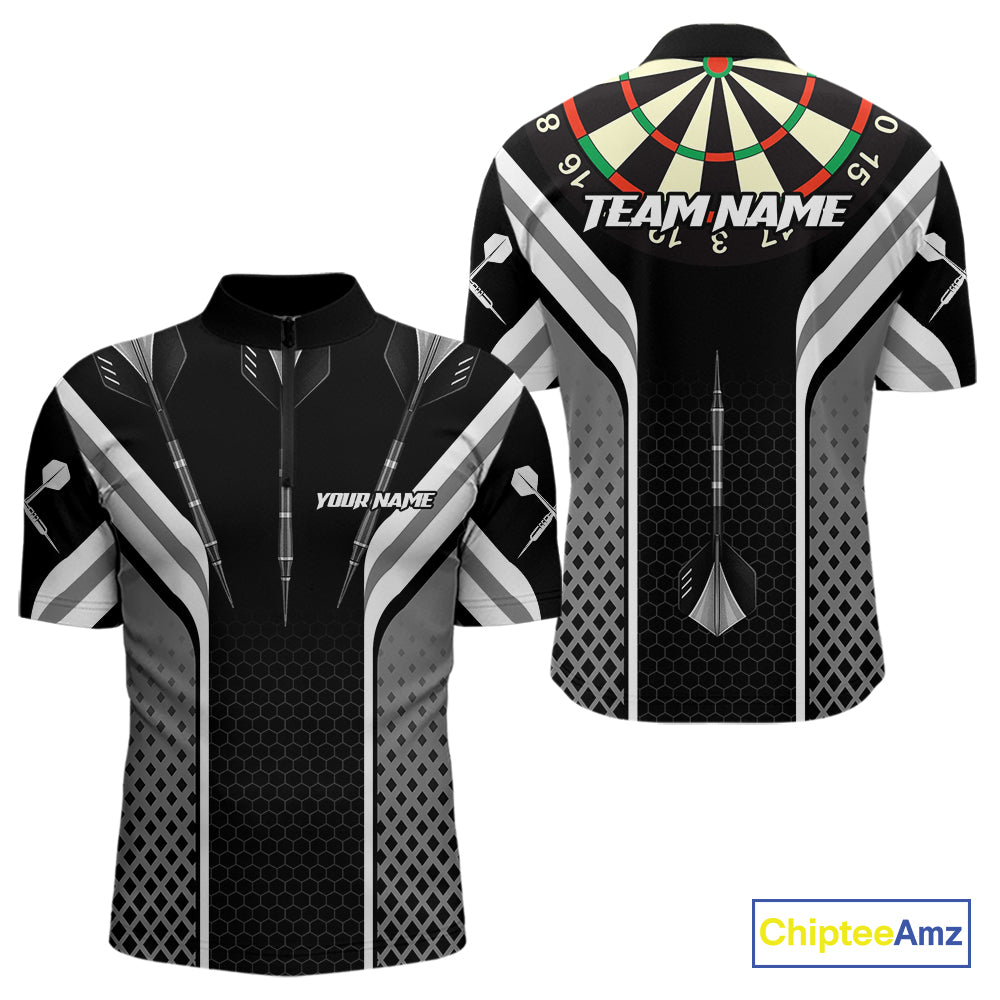 Black Darts Arrow Hit The Bullseye Darts Shirt For Men - Custom Team & Player Name NYN0361