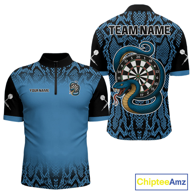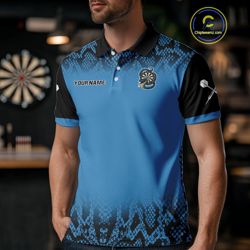 Navy Snake & Reptile Skin With Striking Dartboard Darts Shirt For Men - Custom Name NYN0372