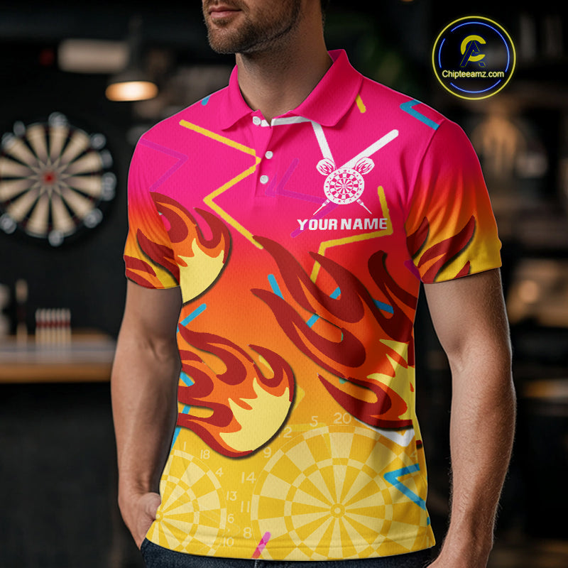 Flames In Vibrant Pink & Yellow Darts Funny Shirt For Men - Custom Team Name NYN0373