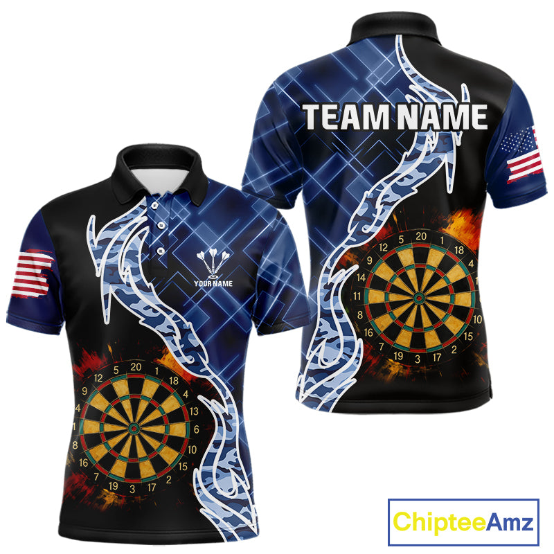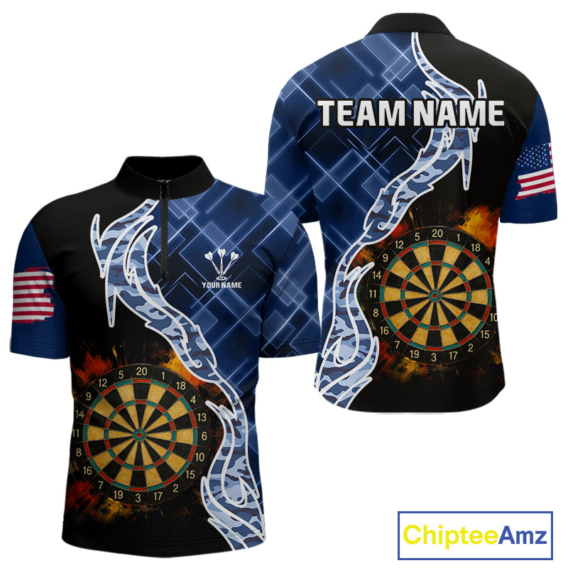 Colorful Splash Dartboard & Cobalt Camo Darts Shirt For Men - Custom Team Name NYN0376