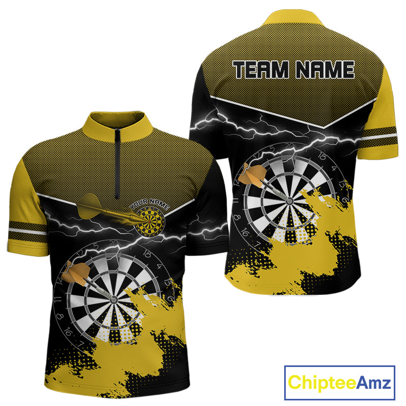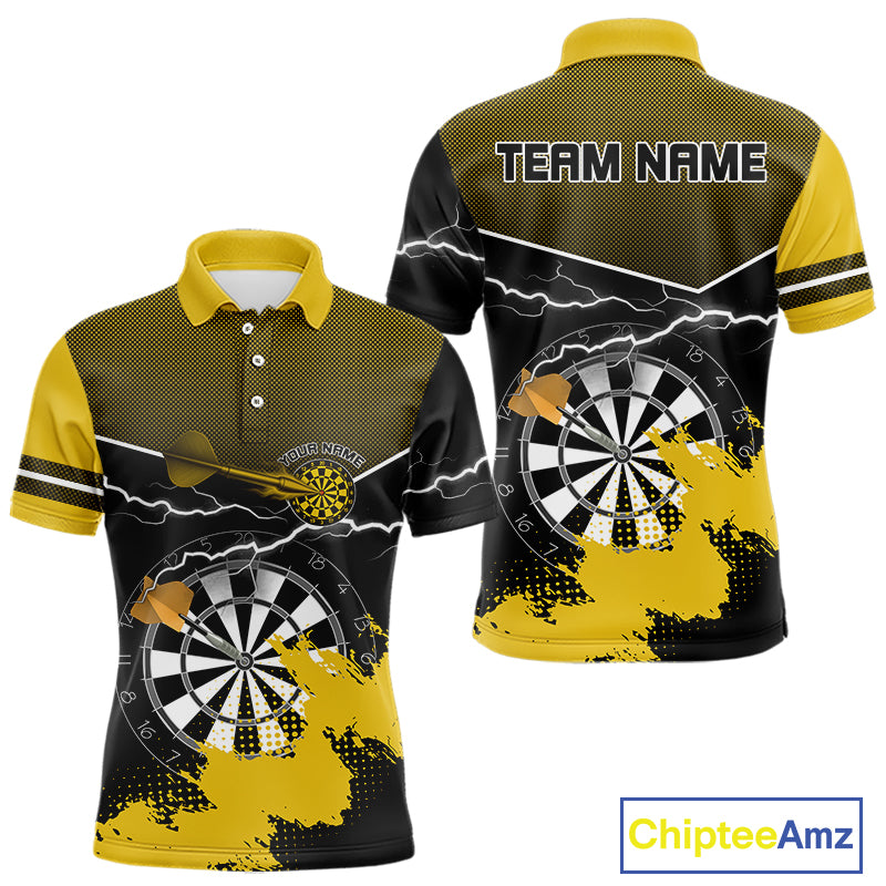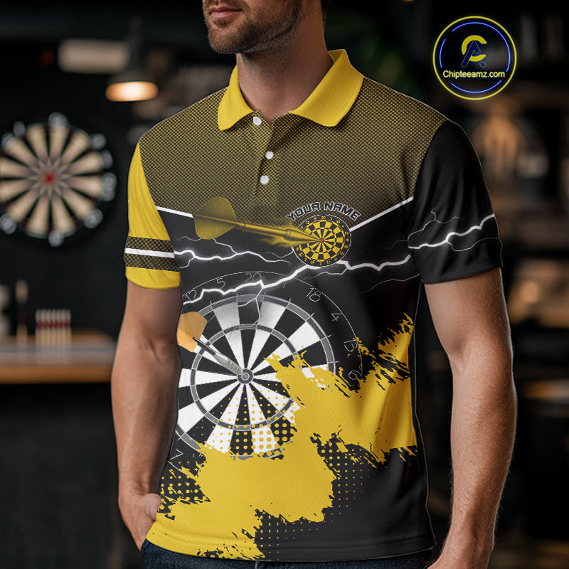 Yellow And Black Dartboard Lightning Darts Shirt For Men - Custom Team Name NYN0382