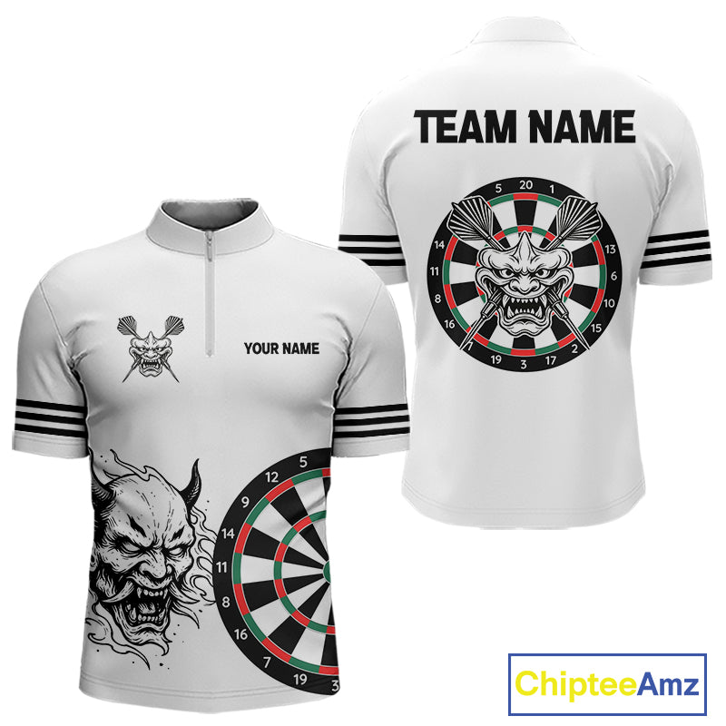 White Demon Head & Darts Arrow Darts Team Shirt For Men - Customizable Name NYN0393