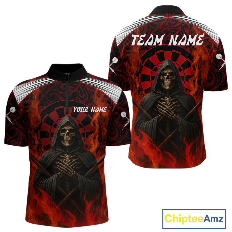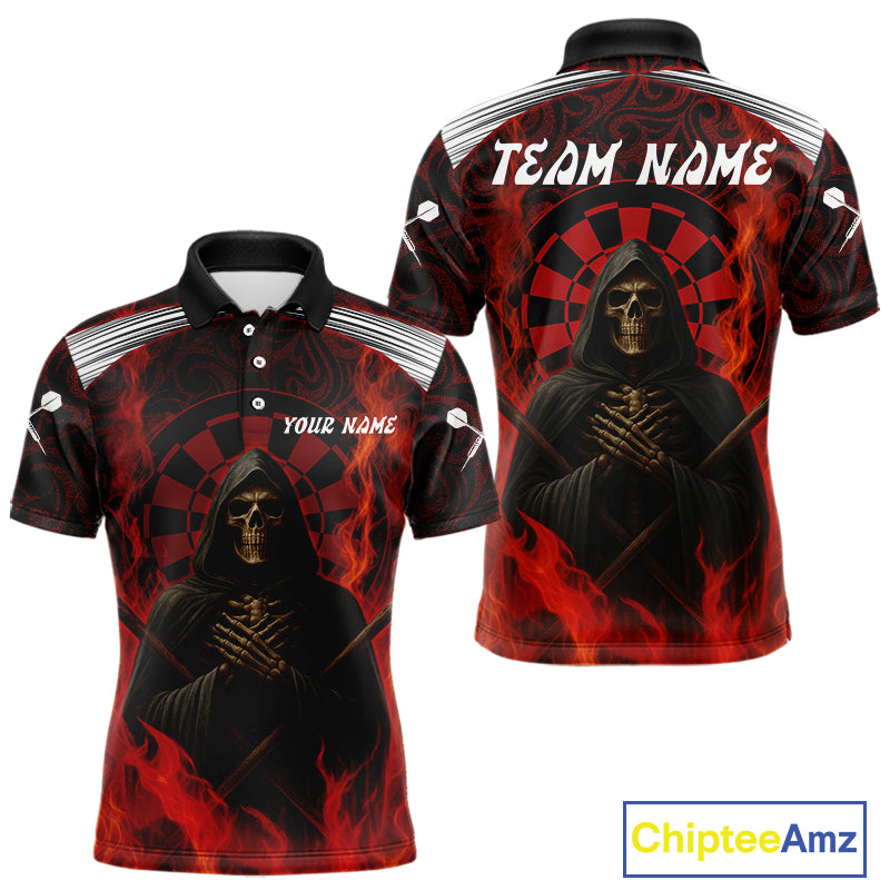 Red Dartboard Flaming The Reaper Darts Shirt For Men - Customizable Name & Team NYN0405