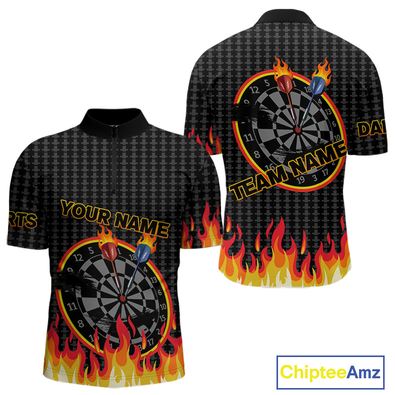 Fire Dart Arrows & Flaming Pattern Darts Shirt For Men - Customizable Name & Team NYN0409