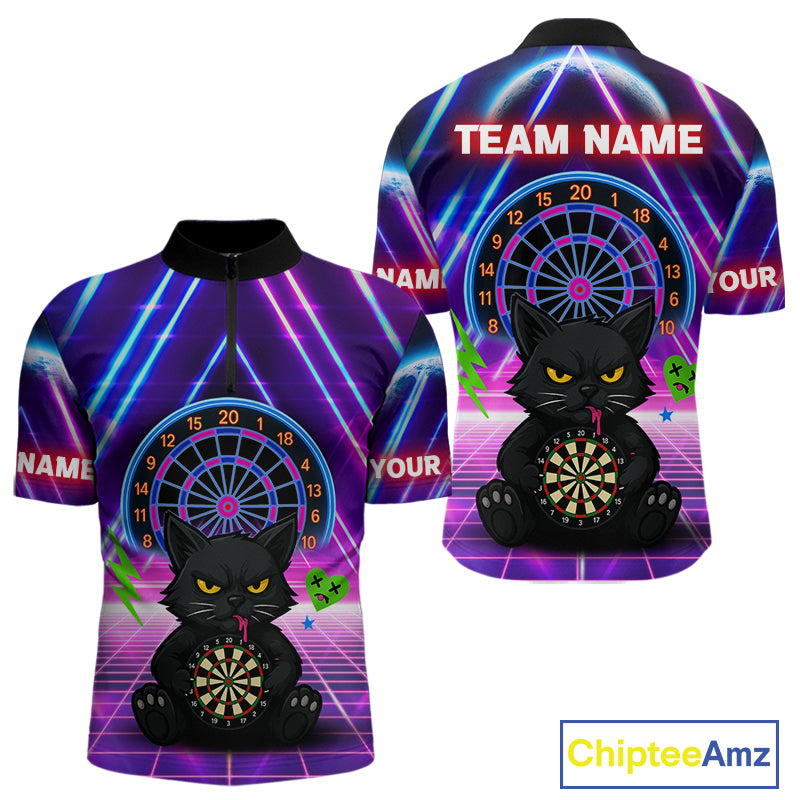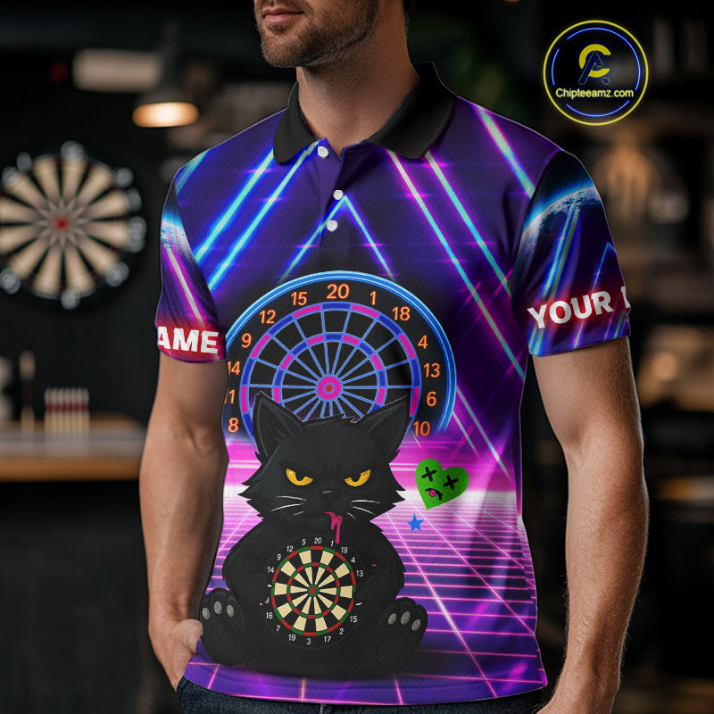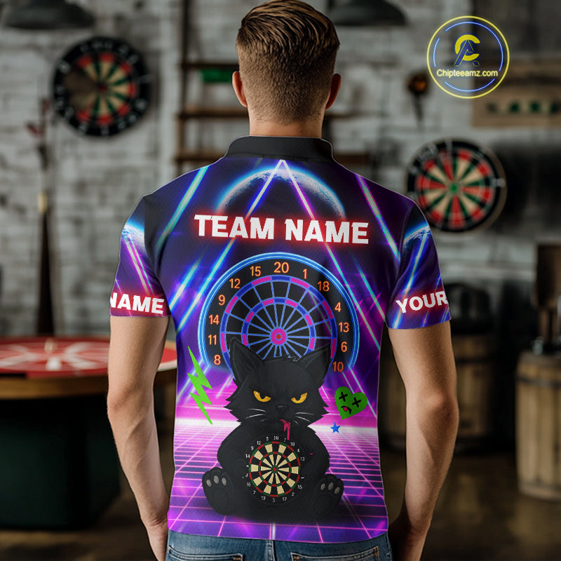 Dark Cat & Neon Electric Men's Darts Shirt - Custom Name For Dart Players NYN0416