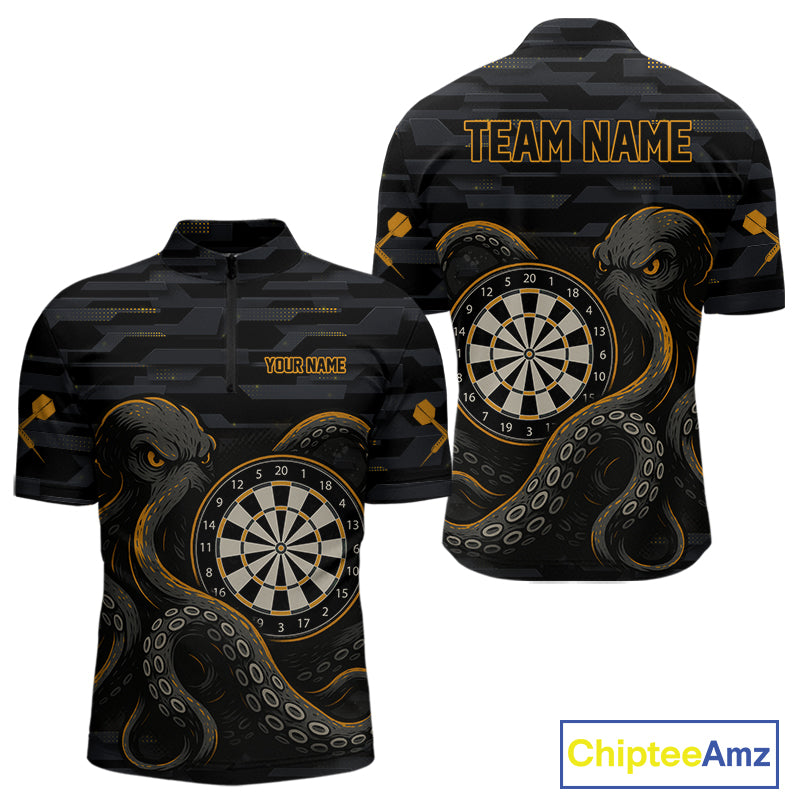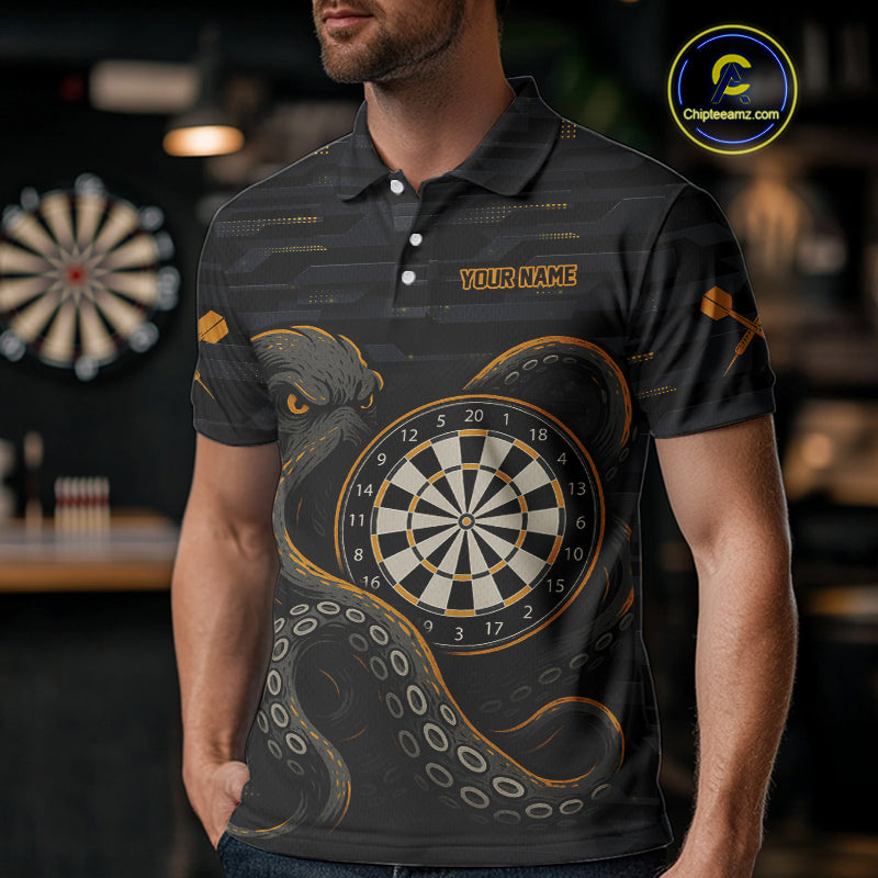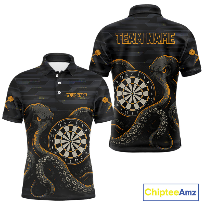 Yellow and Black Octopus Dartboard - Men's Darts Team Shirt - Custom Name For Players NYN0490