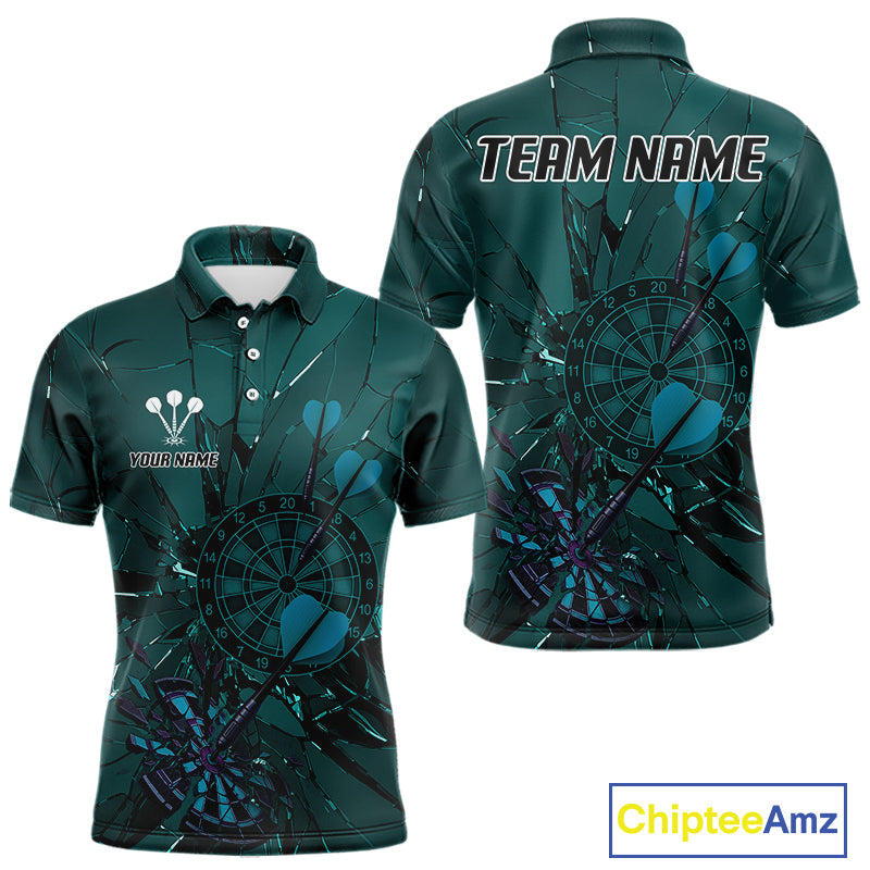 Cracked Dartboard Broken Glass Men's Darts Shirt Custom Name & Team | Opt1 - Dark Teal NYN0653