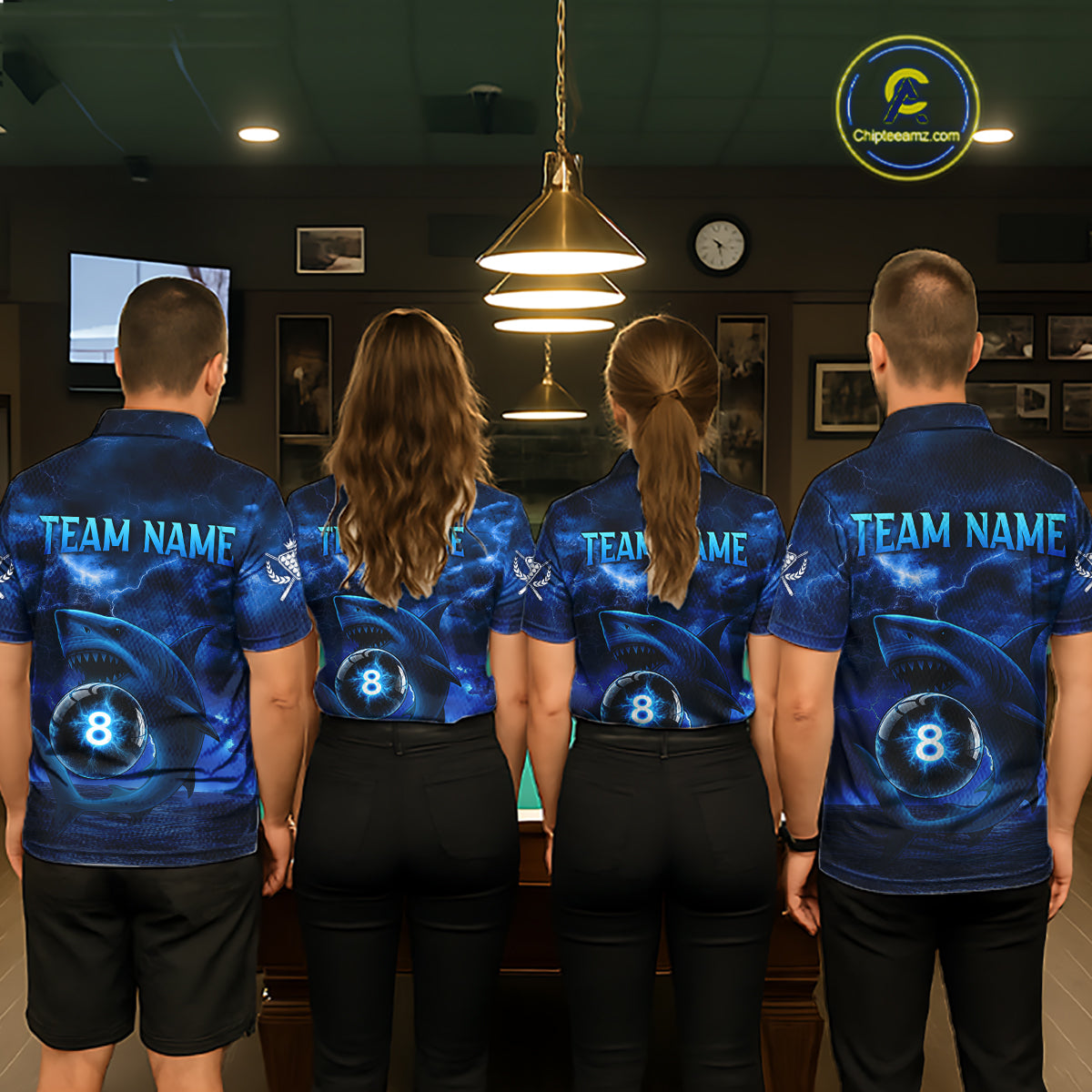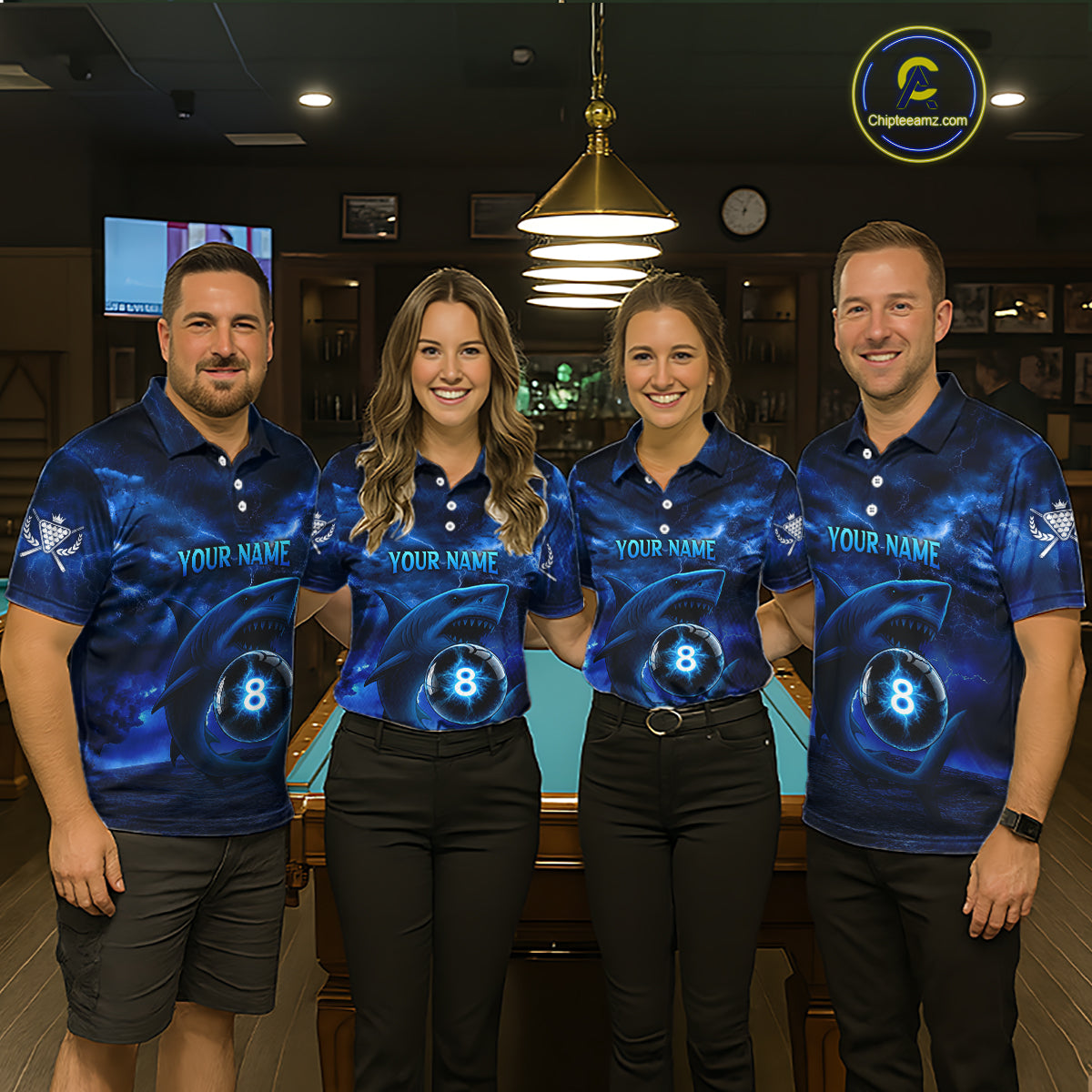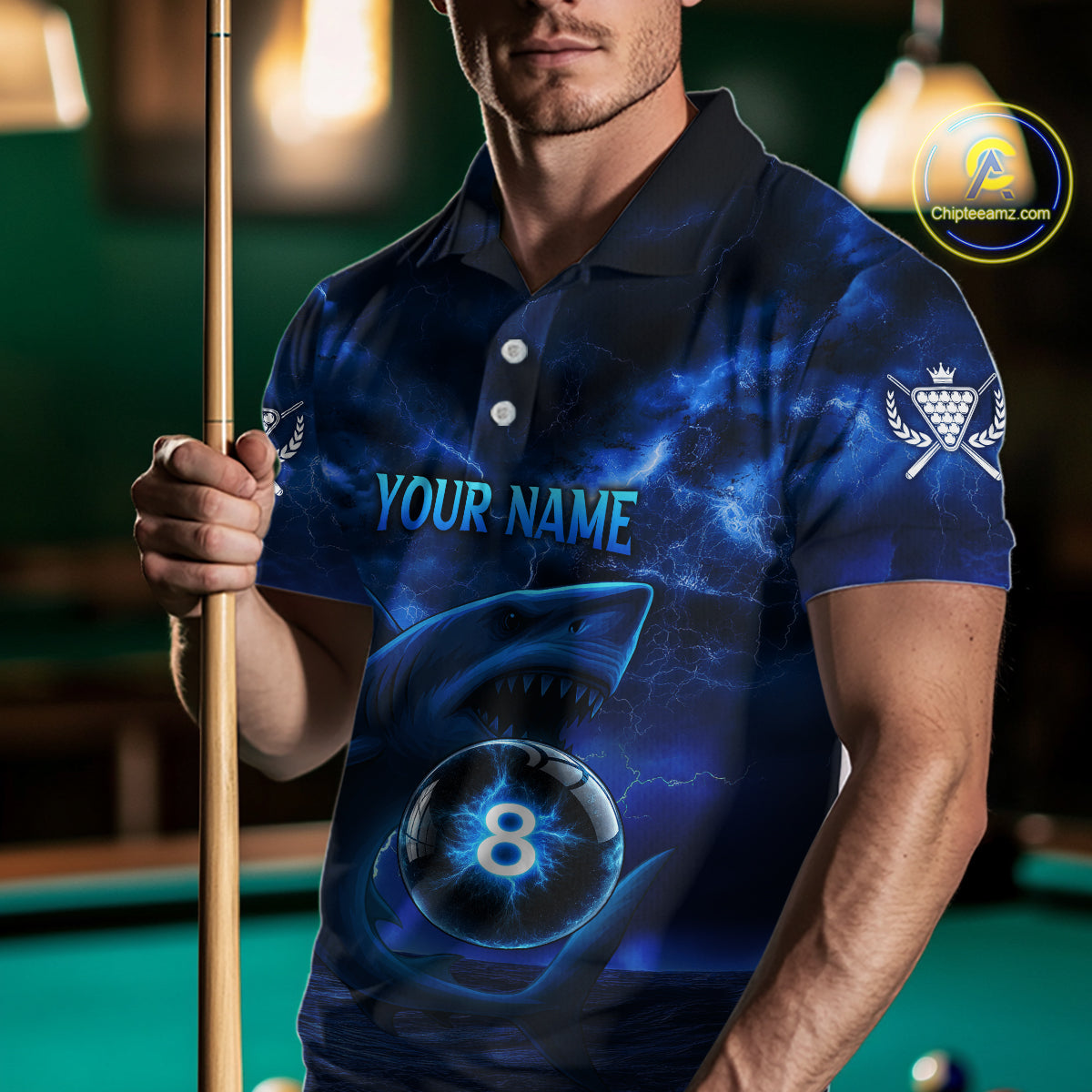 Blue Funny Shark Light 8 Ball Billiard Shirts For Men Custom Pool Billiard Team Jerseys NYN2289