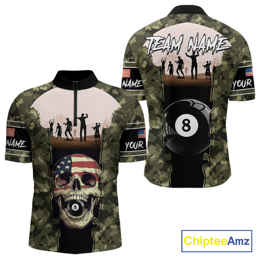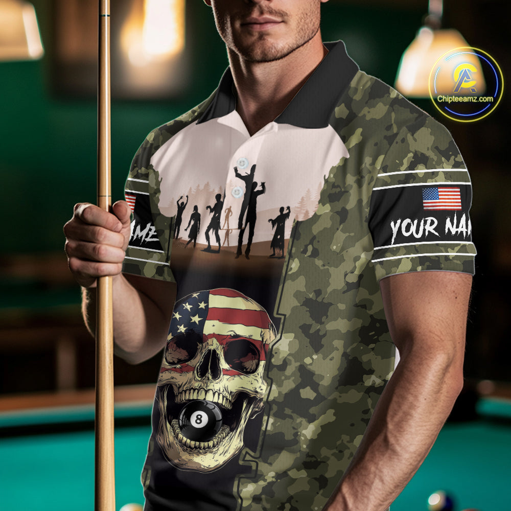 US Flag Skull Patriotic Billiard Shirts For Men Custom Camouflage 8 Ball Billiard Jerseys NYN2292