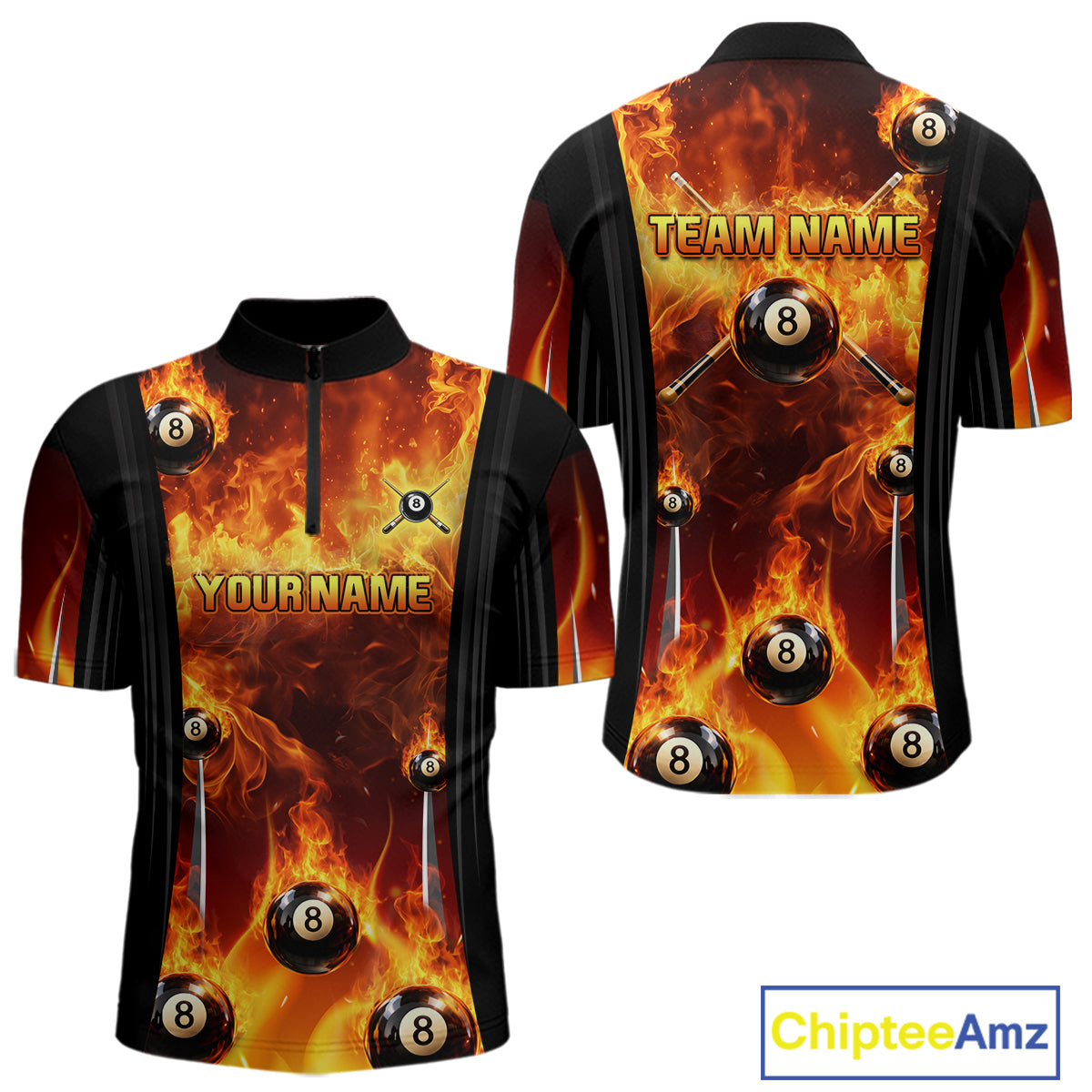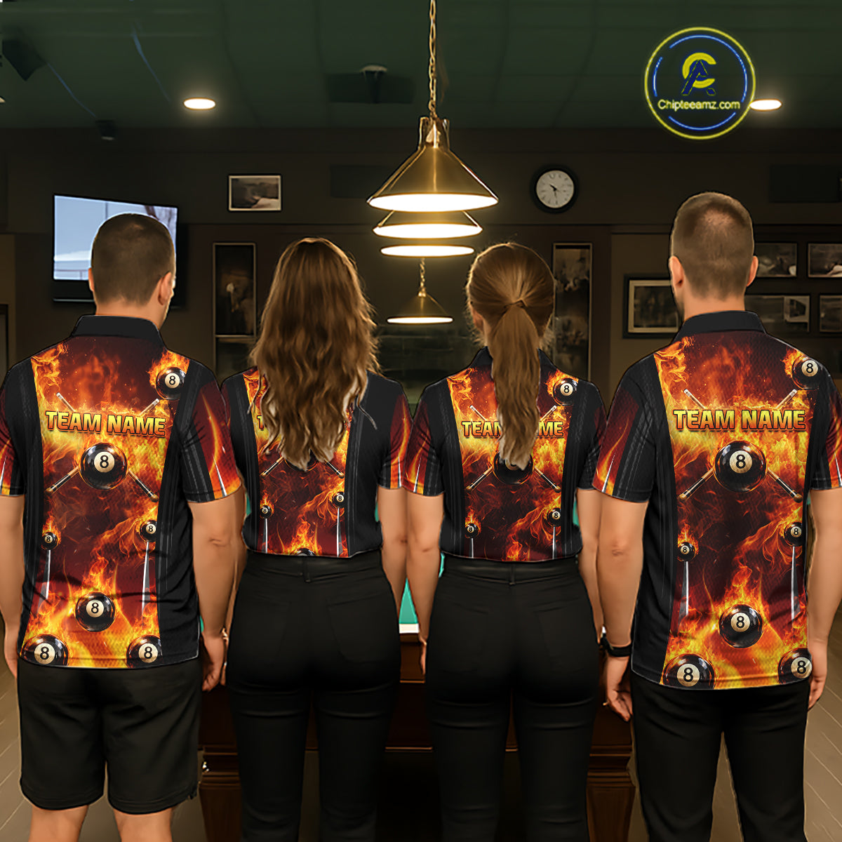 Fire Flame Ball 8 Billiard Pool Jerseys For Men Custom Ball 8 & Cue Billiard Team Jersey NYN2318