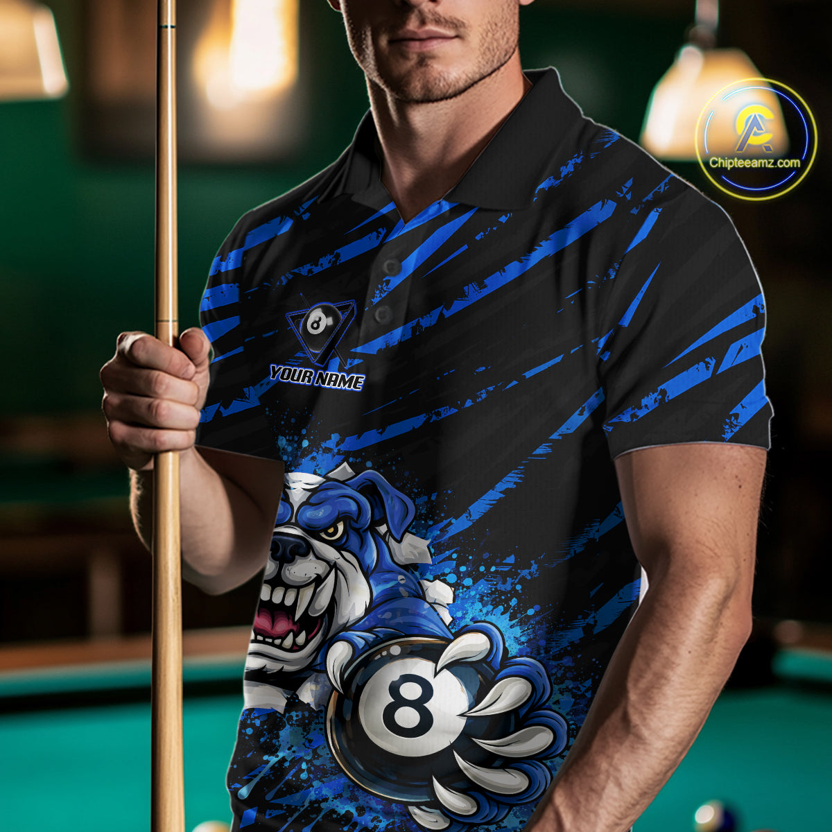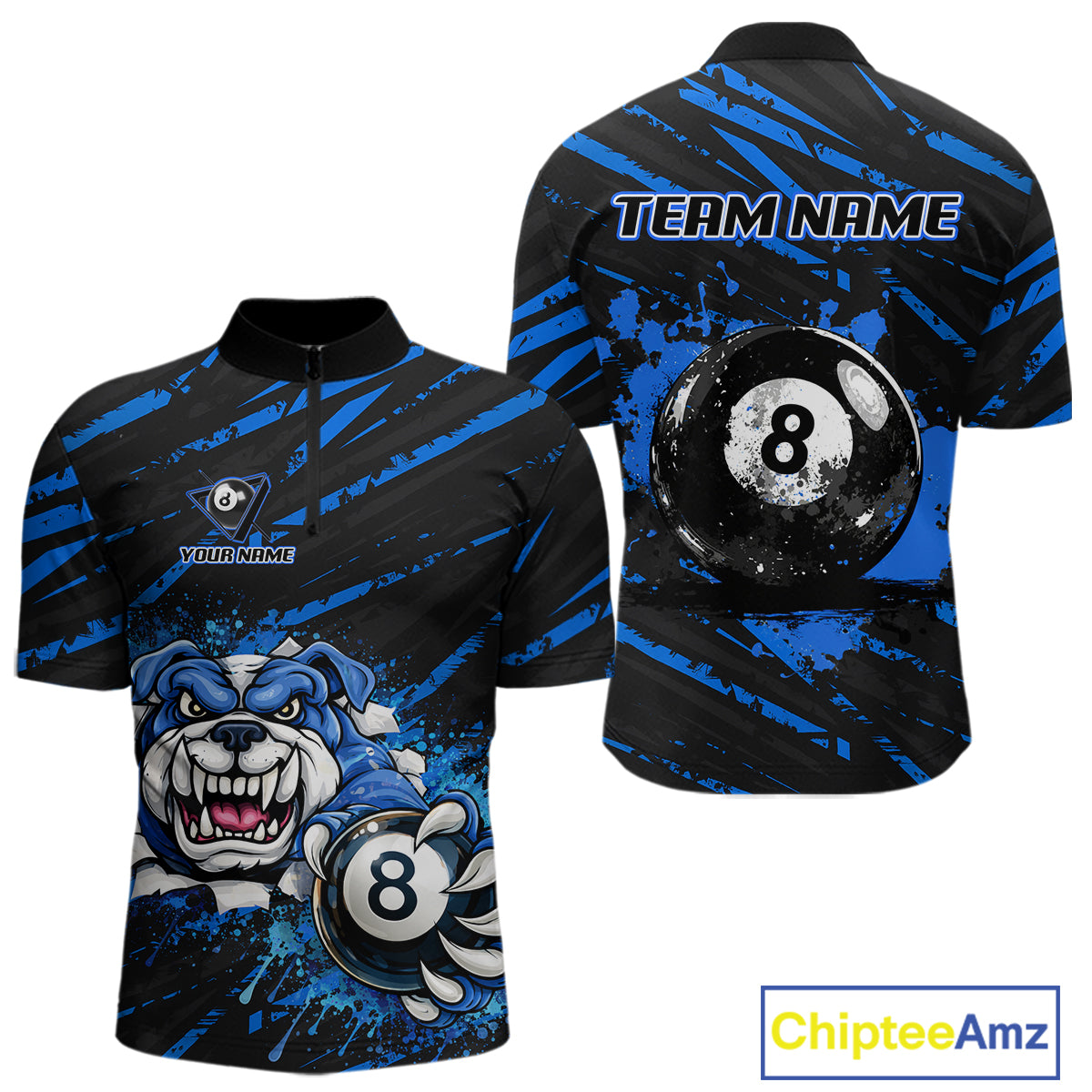 Blue Splatter Ball 8 Billiard Jerseys For Men Custom Funny Bulldog Billiard Team Jersey NYN2319