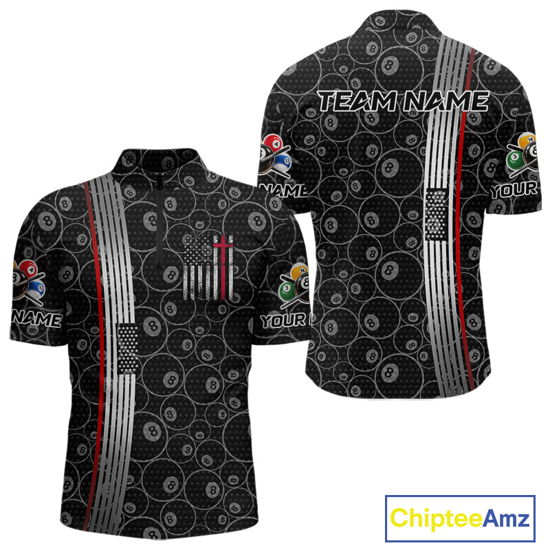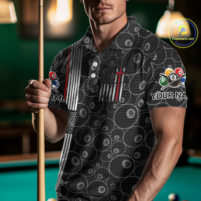 Cross US Flag 8 Ball Men's Billiard Shirts Personalized Patriotic Billiard Team Shirts NYN2322