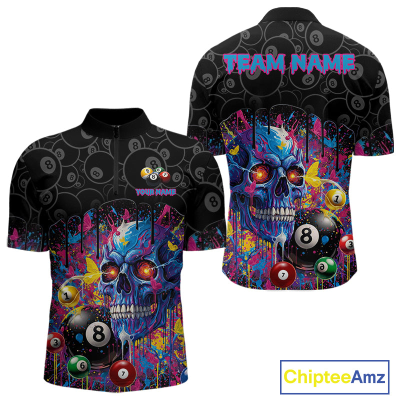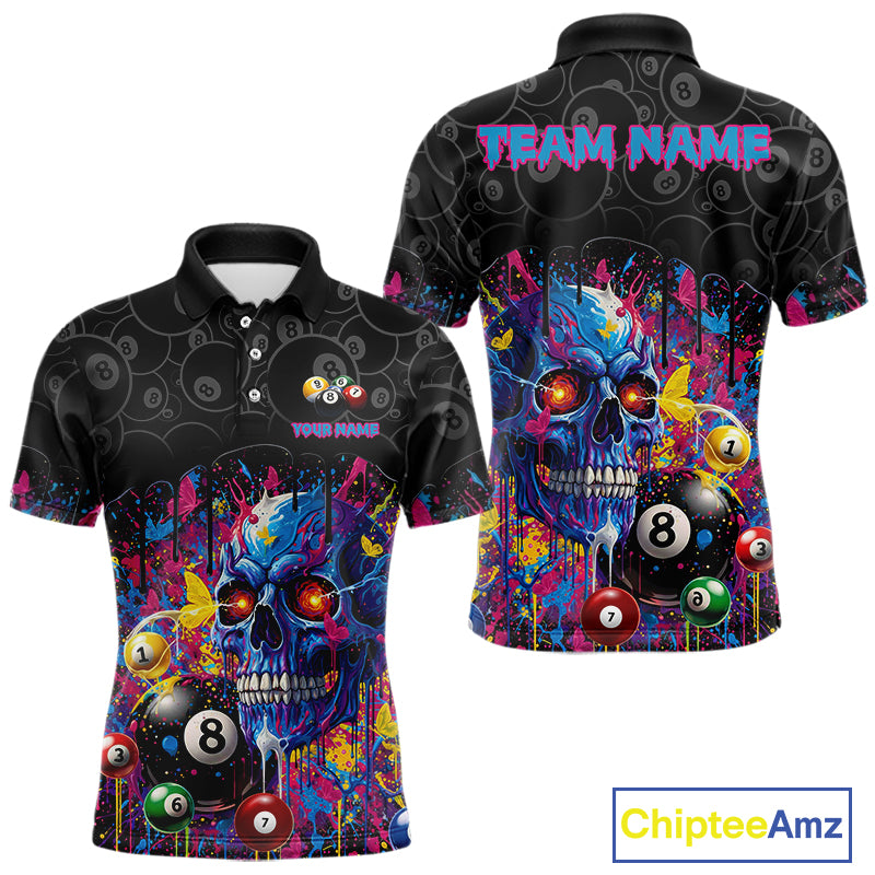 Dripping Splatter Billiard 8 Ball Shirts For Men Personalized Skull Billiard Team Attire NYN2332