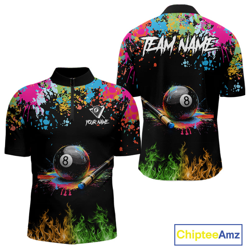 Colorful Paint & Flame 8 Ball Billiard Shirt For Men Personalized Cue Billiard Team Shirt NYN2334