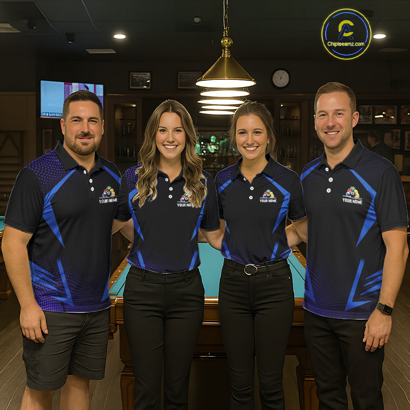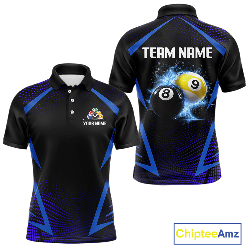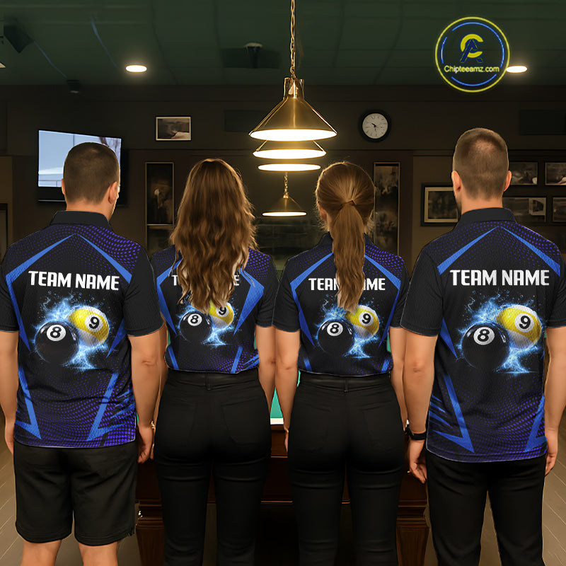 Custom 8 Ball & 9 Ball Men's Billiard Shirt Personalized Thunder Blue Billiard Team Shirt NYN2336