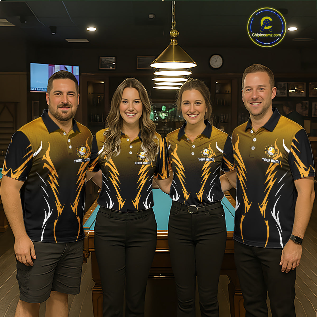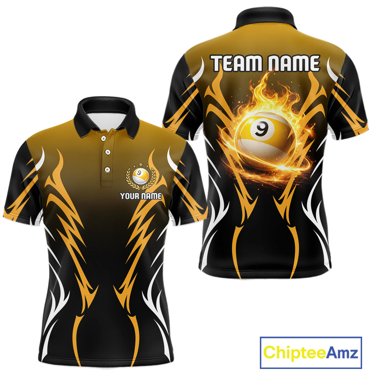 Custom Yellow Flames 8 Ball Men's Billiard Shirts Personalized Billiard Cue Attire Gifts NYN2339