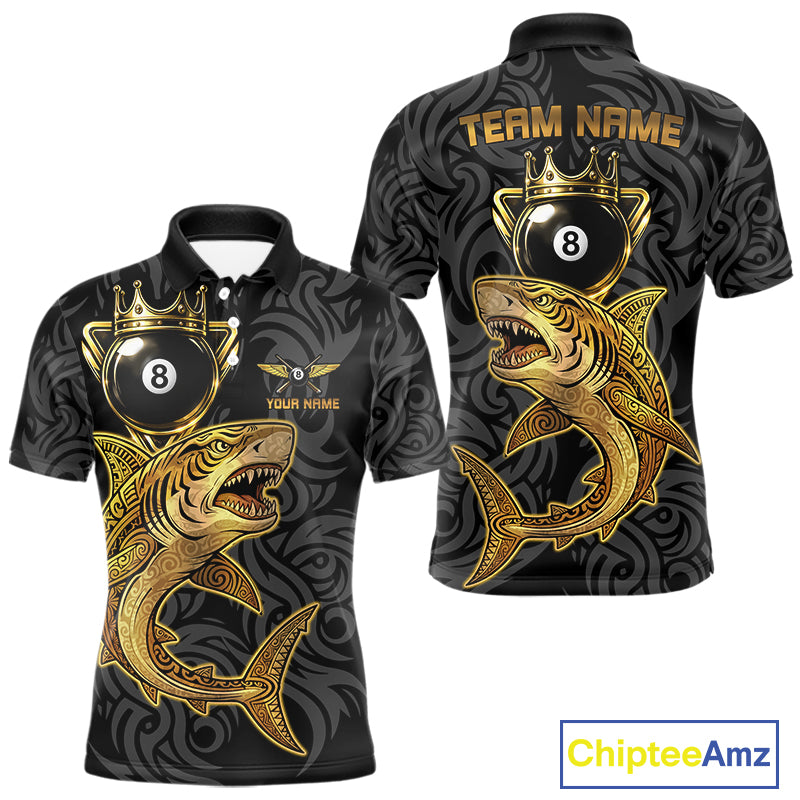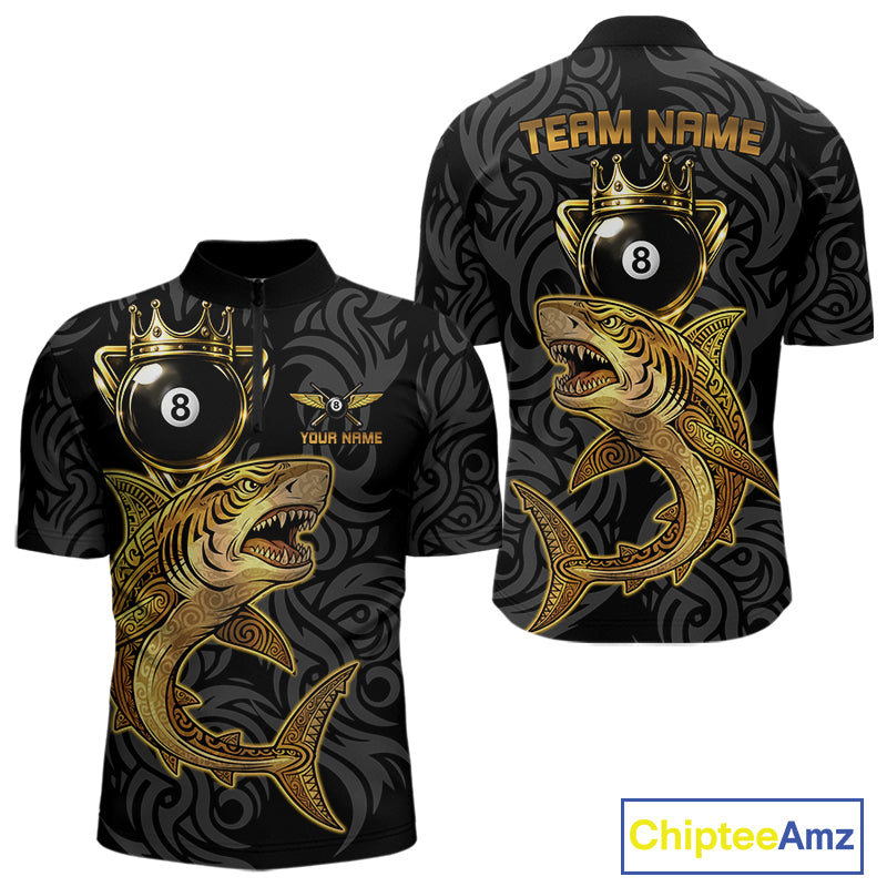 Gold 8 Ball Crown Men's Billiard Team Shirt Custom Shark Tribal Pool Billiard Jerseys NYN2347