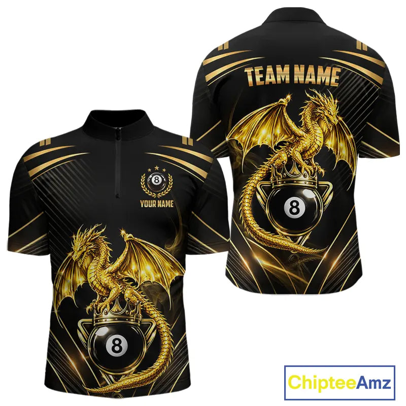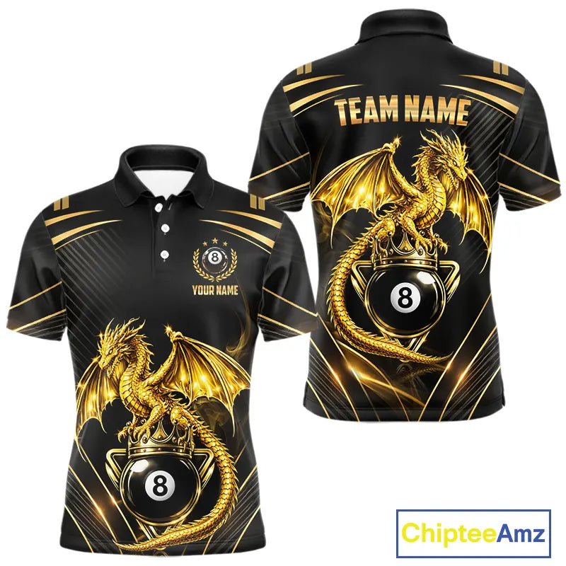 Black & Gold 8 Ball Crown Men's Billiard Team Shirt Custom Dragon Pool Billiard Jerseys NYN2348