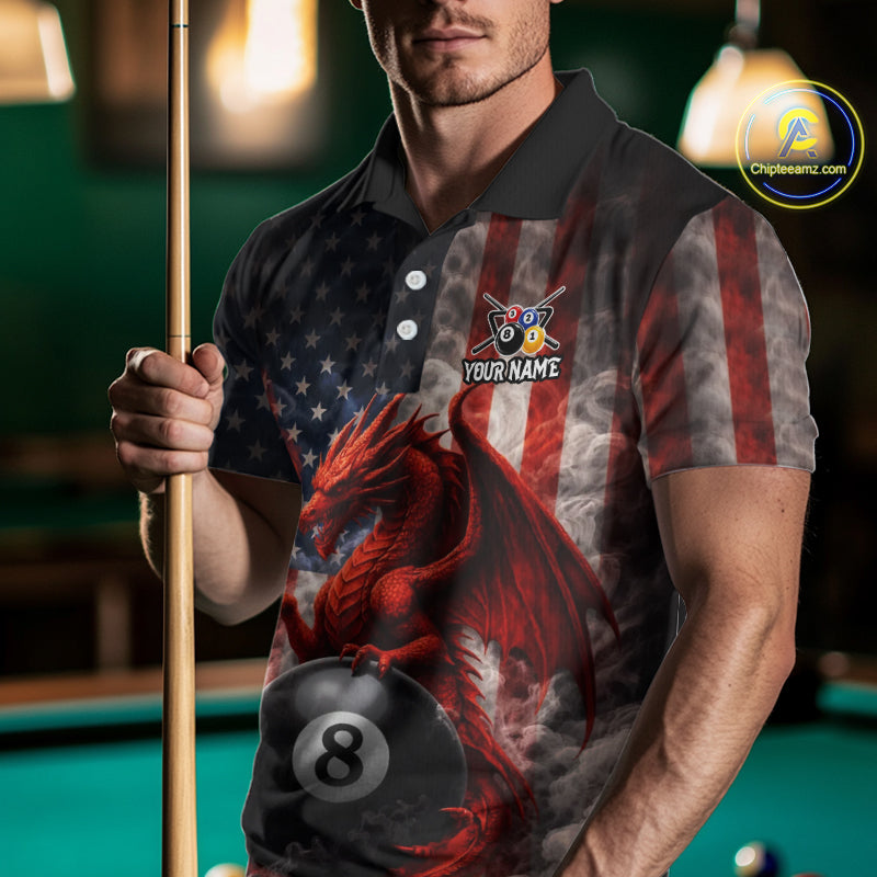 Patriotic Smoke Pool 8 Ball Men's Billiard Team Shirts Custom Dragon Billiard Ball Attire NYN2361