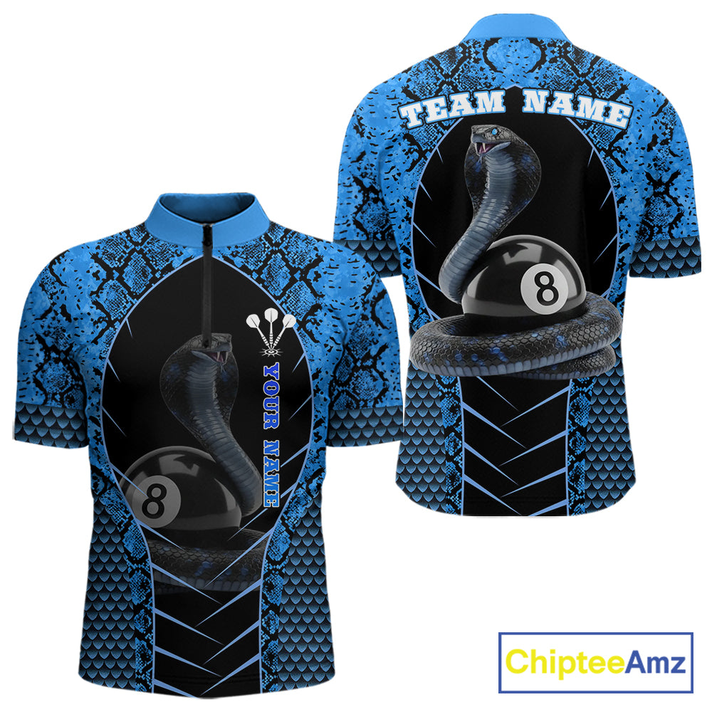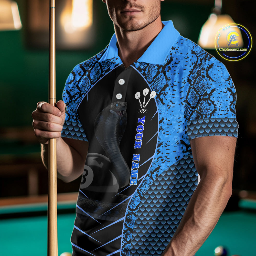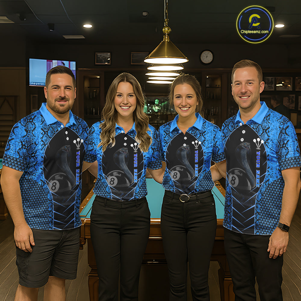Personalized Cobra Snake Men Billiard Team Shirt Blue 8 Ball Billiard Polo & 1/4 Zip Attire NYN2365