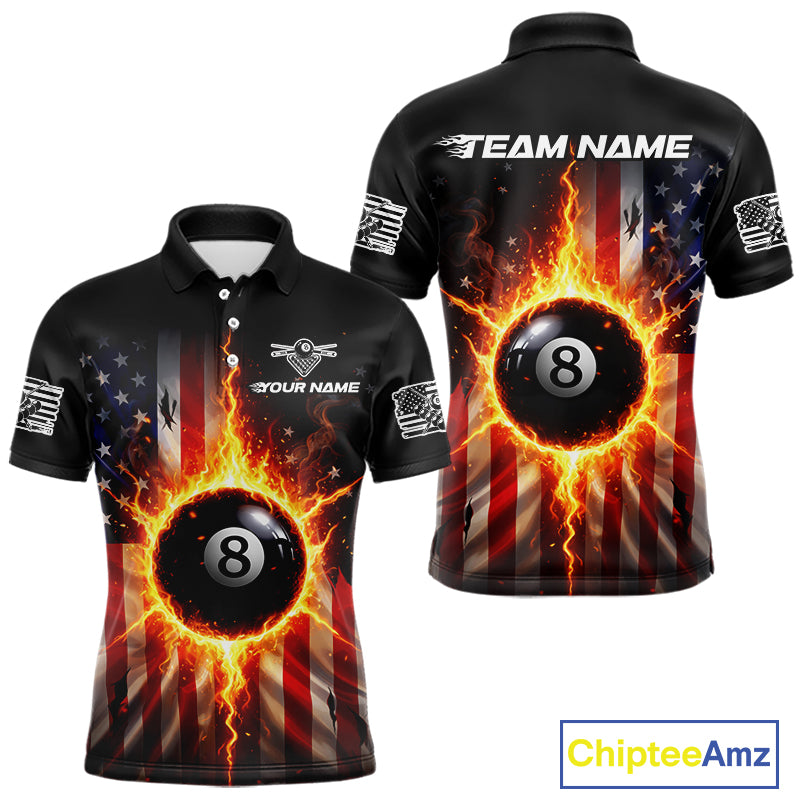 Flame 8 Ball Pool Men Billiard Polo & 1/4-Zip Shirt Custom US Flag Billiard Team Jersey NYN2372