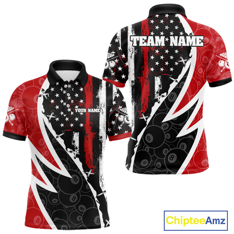 Black & Red US Flag 8 Ball Men Billiard Team Shirt Custom Polo & 1/4-Zip Pool Billiard Attire NYN2377