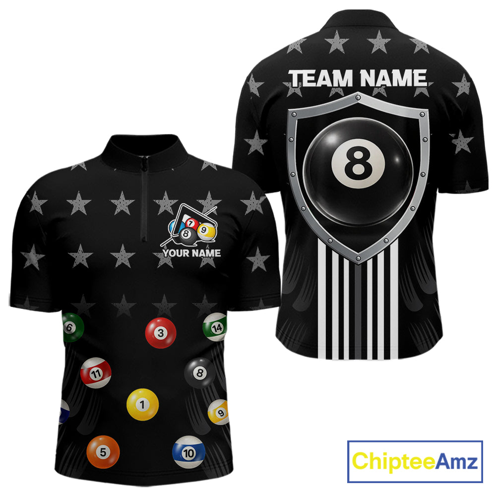 Black Stars 8 Ball Pool Men Billiard Team Shirt Personalized Polo & 1/4-Zip Billiard Gifts NYN2381