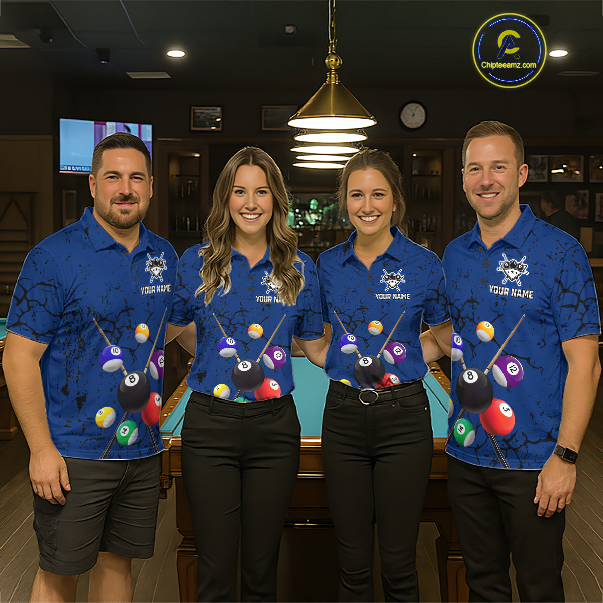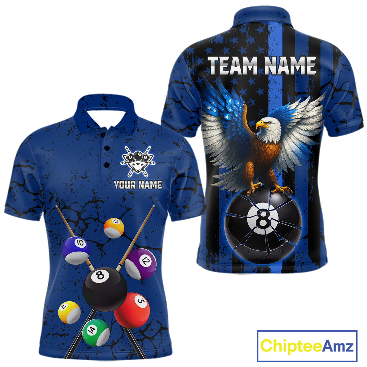 Eagle Crack 8 Ball Pool Men Billiard Team Shirt Custom Polo & 1/4-Zip Billiard Apparel|Blue NYN2382