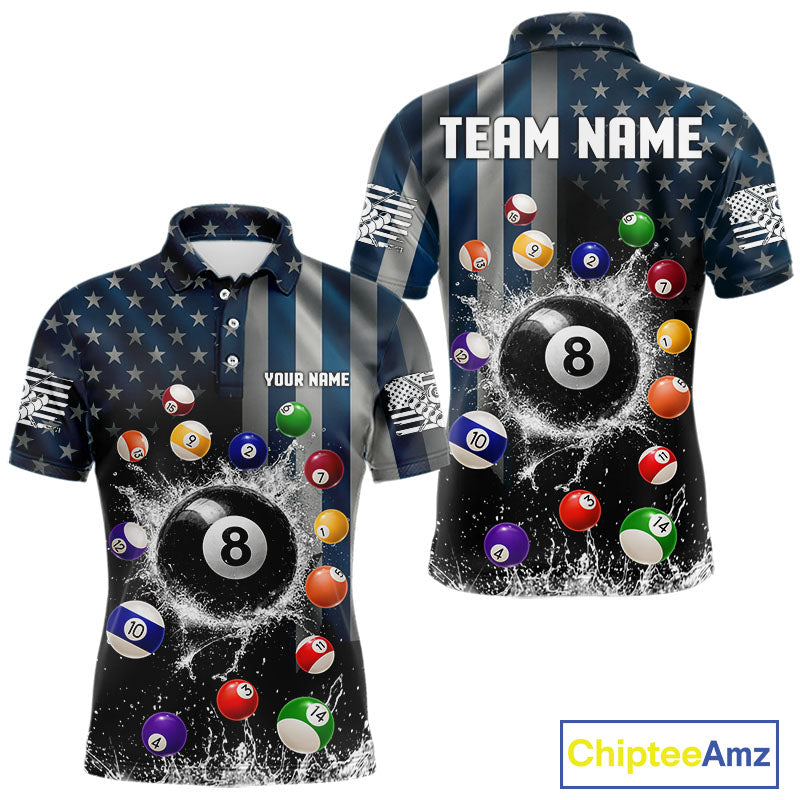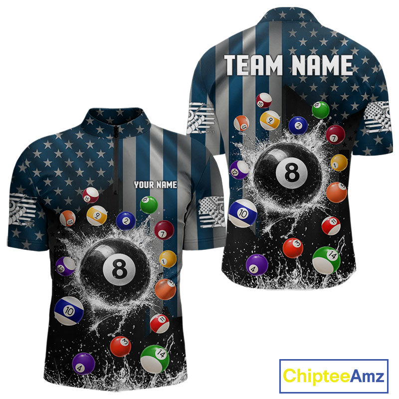 Watering 8 Ball Men Billiard Polo & 1/4-Zip Shirt Custom US Flag Pool Billiard Team Apparel NYN2384