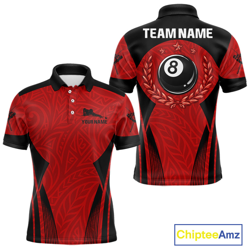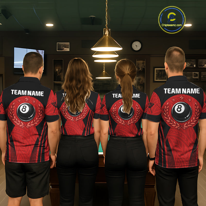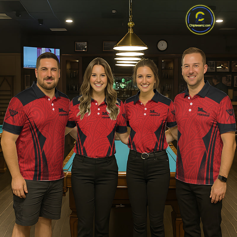 Red Tribal Ball Pool Men Billiard Polo & 1/4-Zip Attire Custom 8 Ball Billiard Team Shirt NYN2388