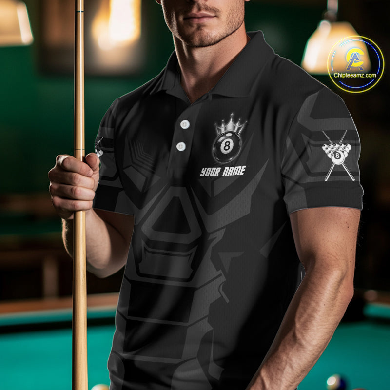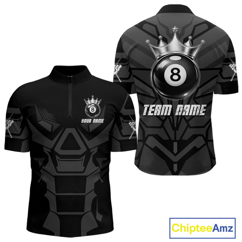Black And Silver Crown 8 Ball Pool Shirts Custom Men Billiards Balls Polo & Quarter-Zip Attire NYN2397