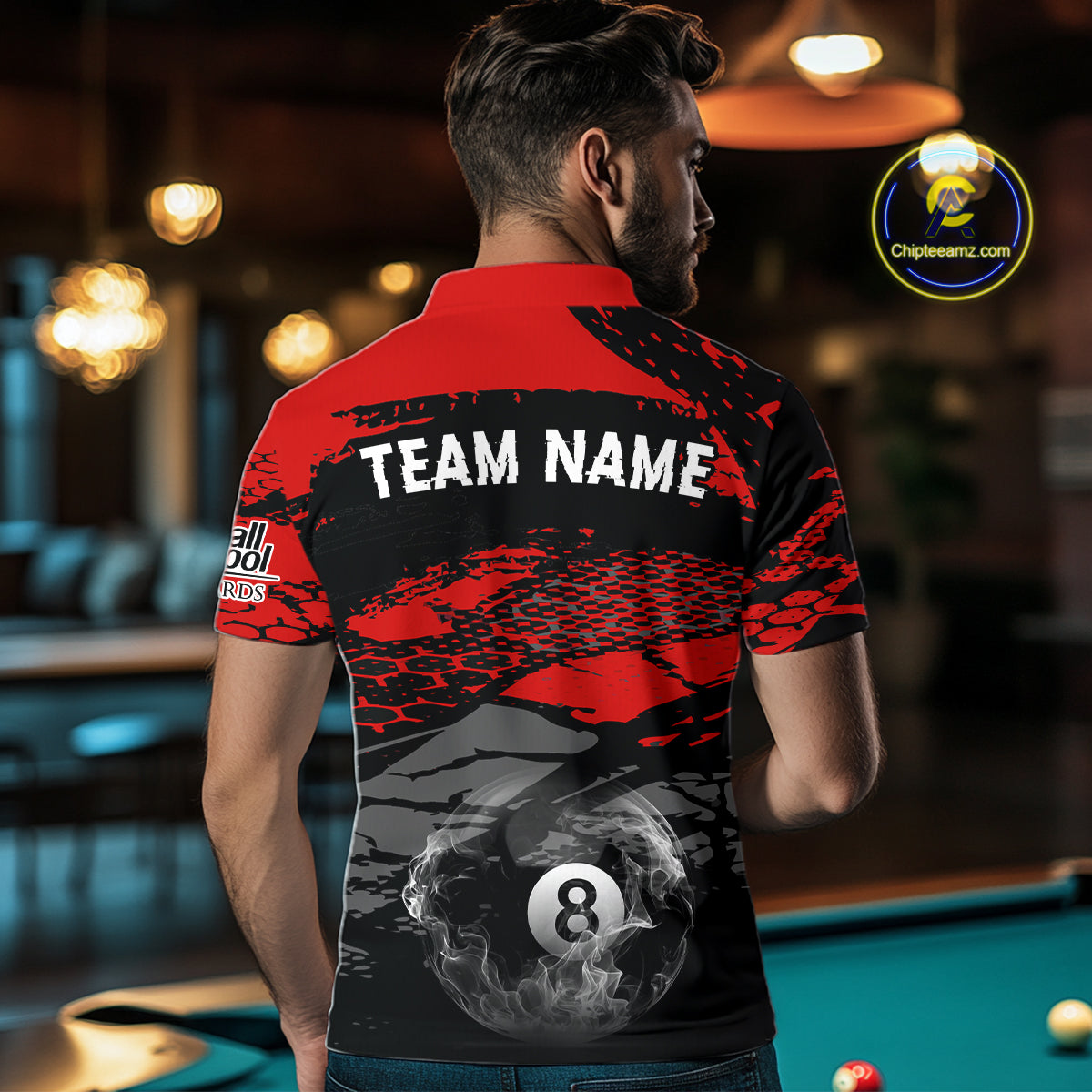 Black & Red Grunge 8 Ball Pool Men Billiard Polo & 1/4-Zip Jersey Custom Billiard Shirt Designs NYN2411
