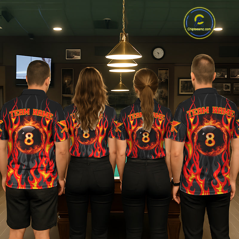 Fire Flame 8 Ball Pool Men Billiard Polo & 1/4-Zip Attire Custom Red Billiard Shirt Designs NYN2412