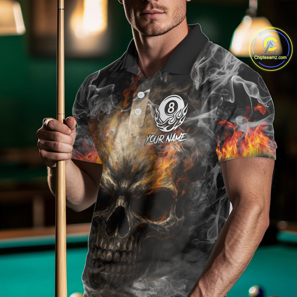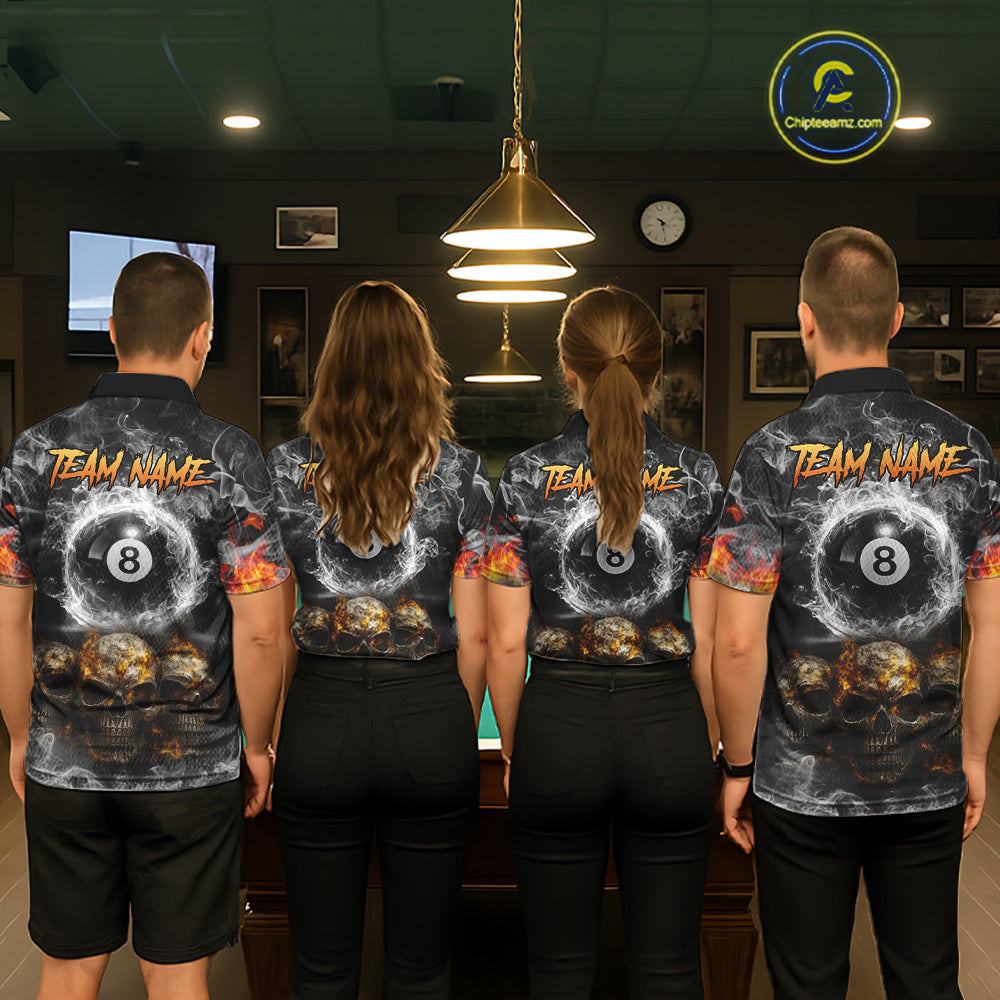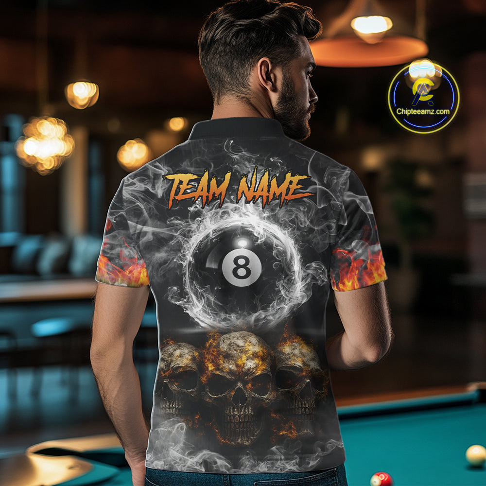 Fire Flame Skull Balls Billiard Shirt For Men Custom Smoke Ball 8 Pool Billiard Team Shirts NYN2414