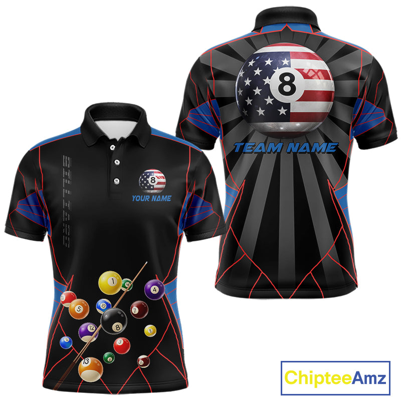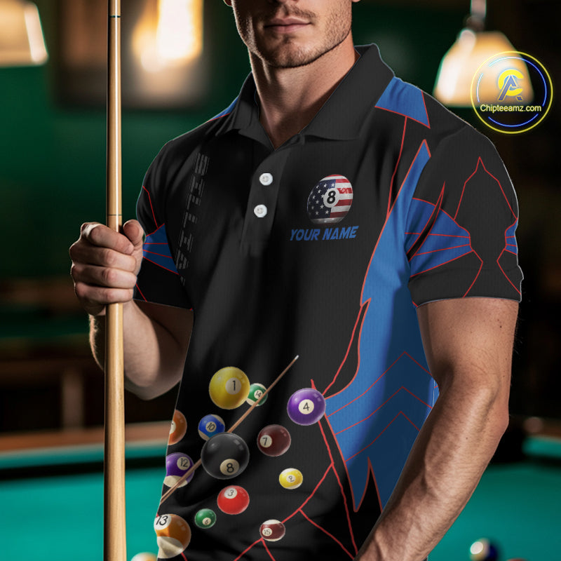 Custom US Flag 8 Ball Pool Team Shirt Personalized Men Billiard Polo & 1/4-Zip Attire Gifts NYN2417