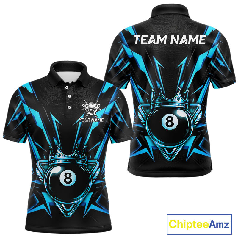 Black And Blue Crown 8 Ball Pool Polo & 1/4-Zip Shirt For Men Personalized Ball Billiard Gifts NYN2424