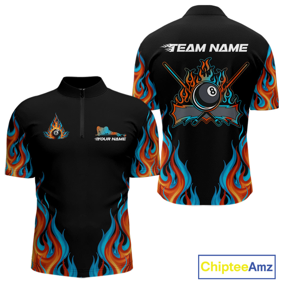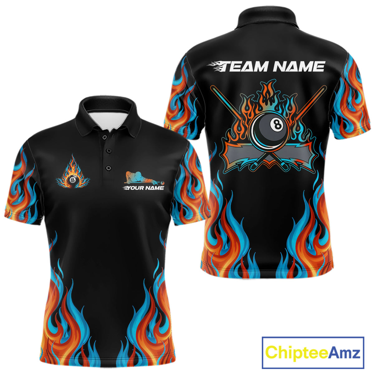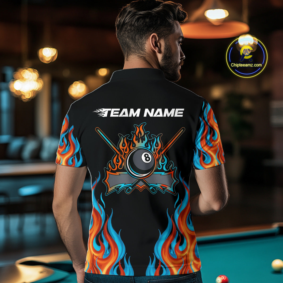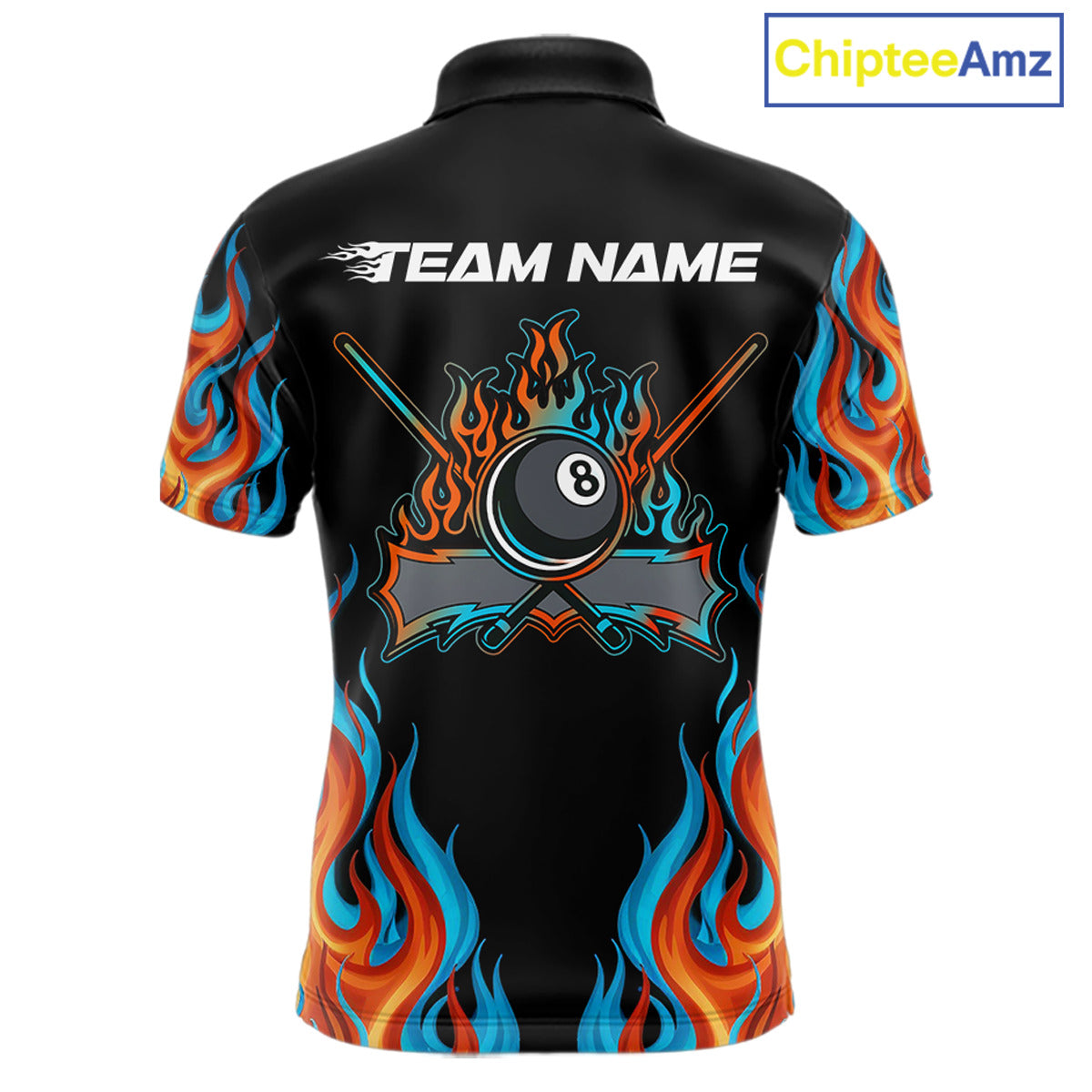 Red And Blue Flames 8 Ball Pool Billiard Team Shirt For Men Custom Billiard Balls Jerseys NYN2441