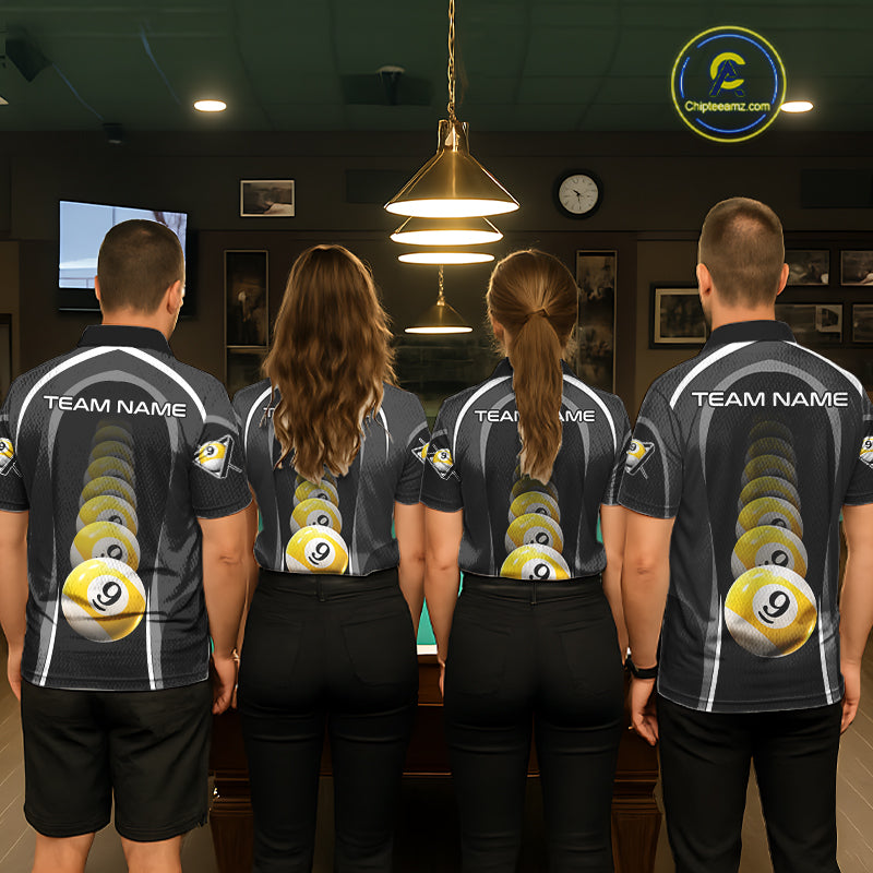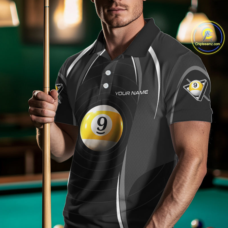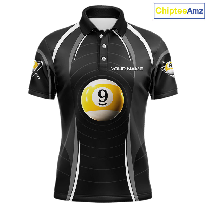 Black Blur 9 Ball Pool Polo & 1/4-Zip Team Shirt For Men Personalized Billiards Ball Apparel NYN2454