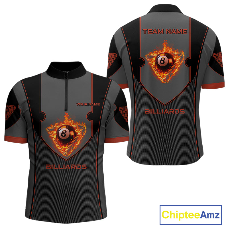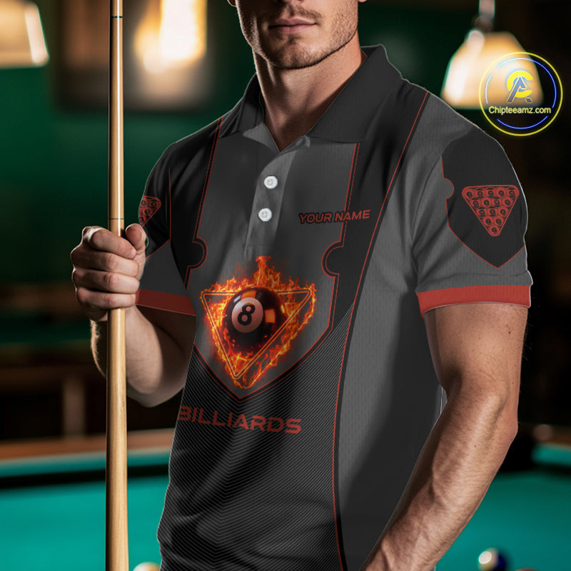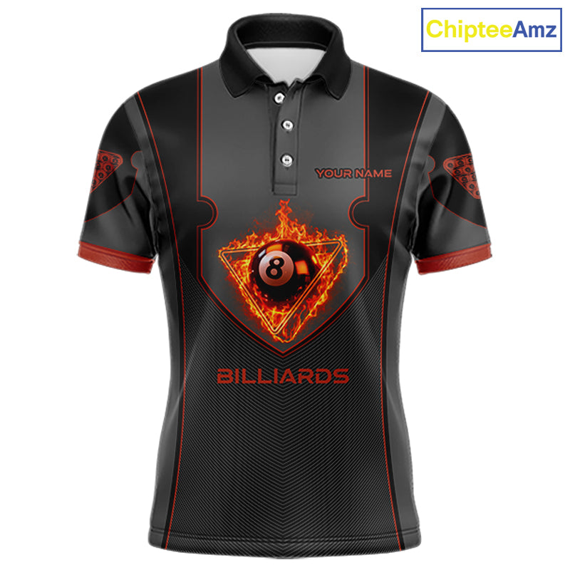 Fire Flame 8 Ball Pool Polo & 1/4-Zip Team Shirt For Men Custom Billiards Ball Apparel|Red NYN2456