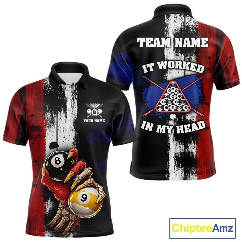 Skull Hoding 9 Ball & 8 Ball Pool Men Billiard Team Shirt Custom Blue & Red Billiards Ball Apparel NYN2468