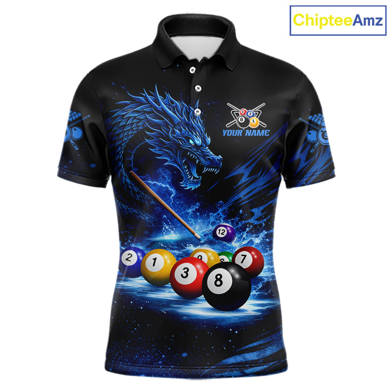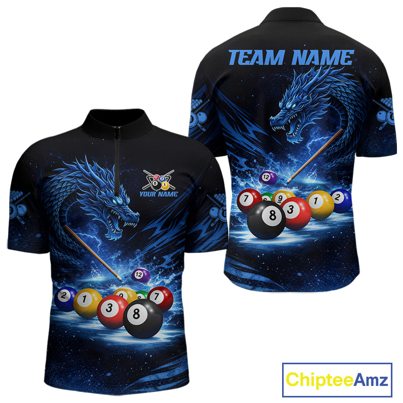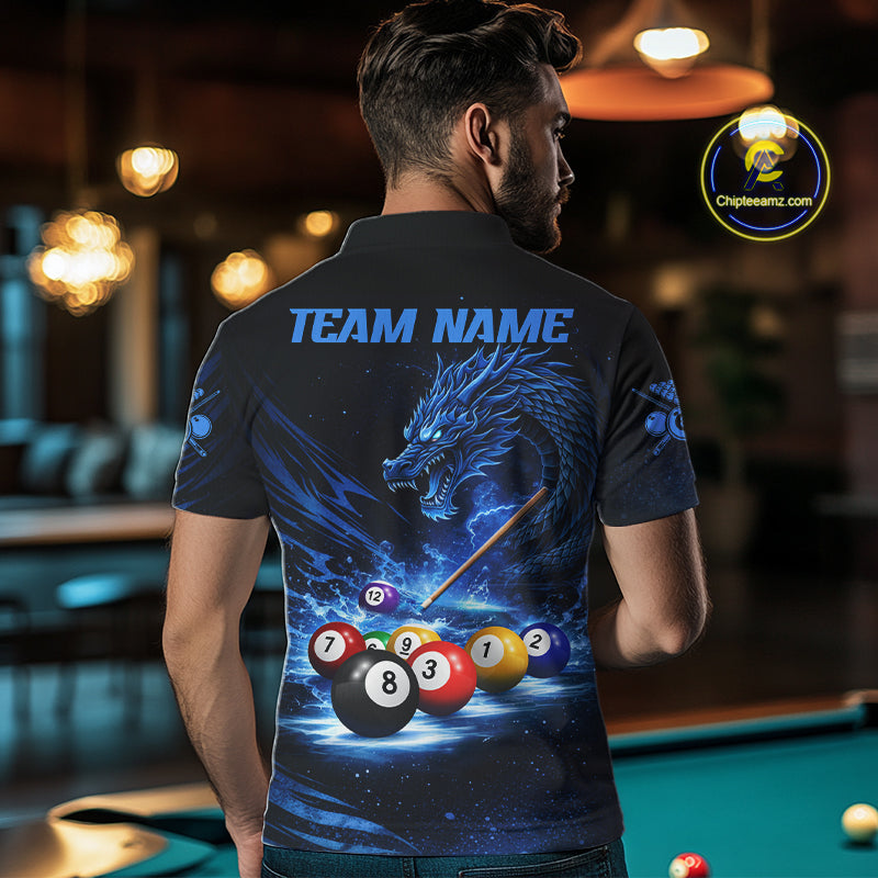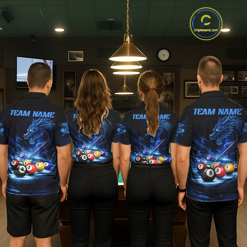 Blue Funny Dragon Thunder Ball Pool Billiard Team Shirt For Men Custom Billiards Ball Attire NYN2469