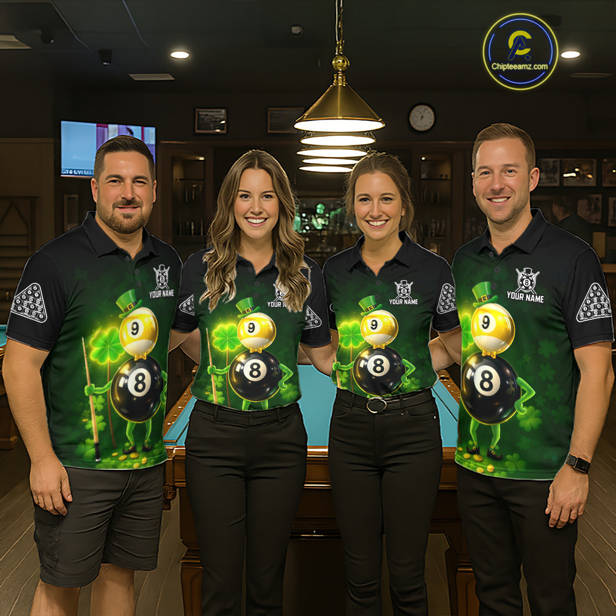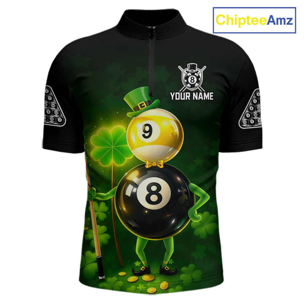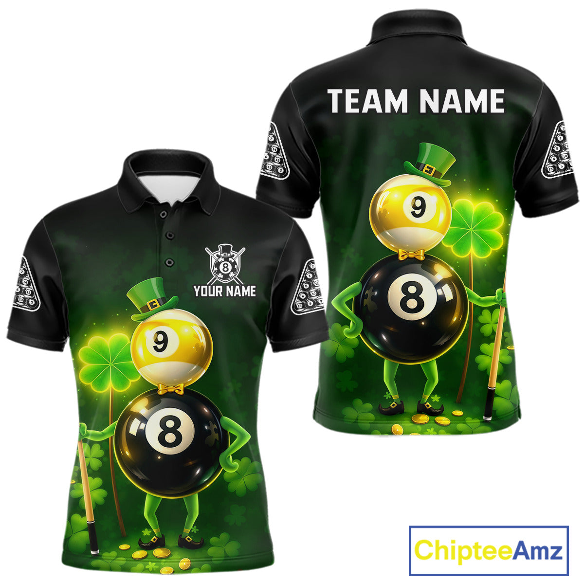 Funny Shamrock Pool 9 Ball & 8 Ball Men's Billiard Team Shirt Custom Patrick Day Billiard Attire NYN2473