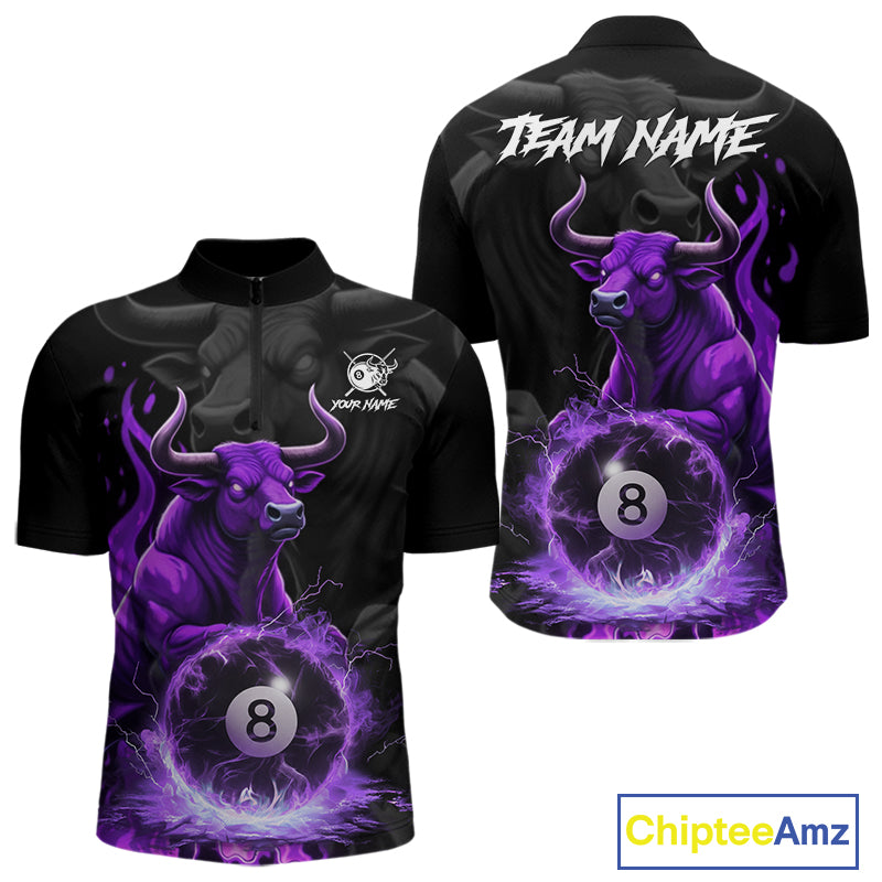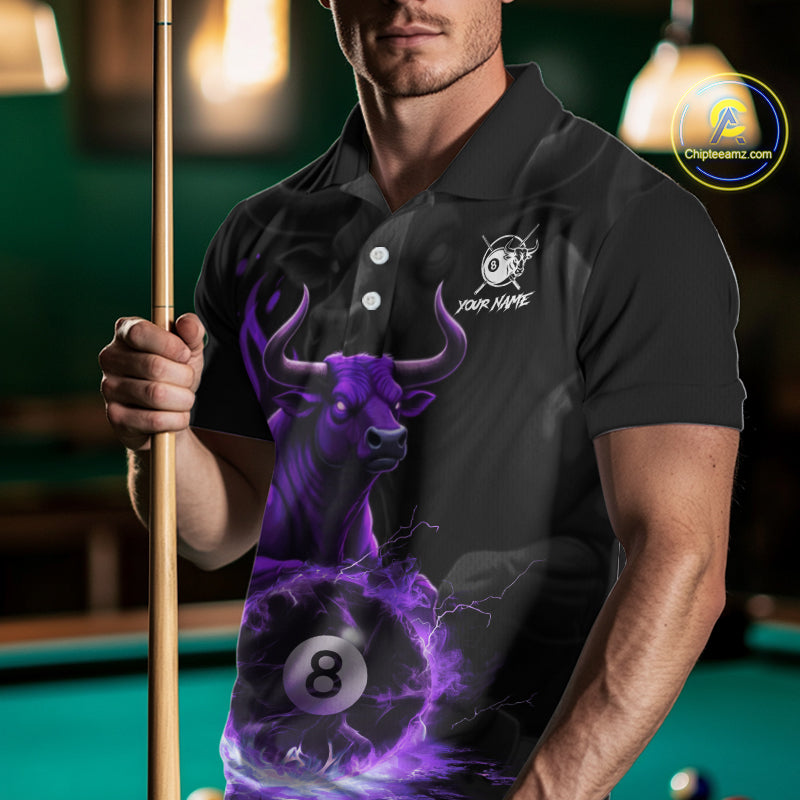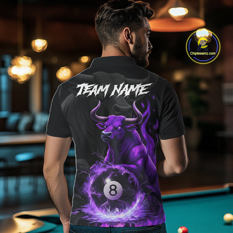 Black & Purple Flames Pool 8 Ball Men's Billiard Team Shirt Custom Funny Bull Billiard Attire NYN2502