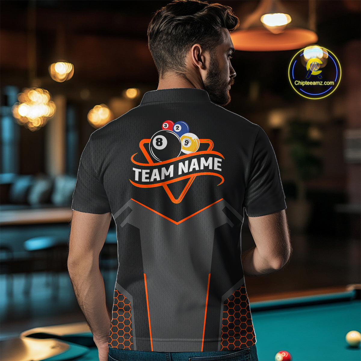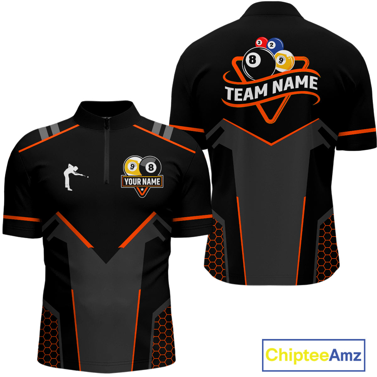 Personalized 8&9 Ball Pool Billiard Polo, 1/4 Zip For Men Custom Team Billiard Jersey|Orange TDM4049