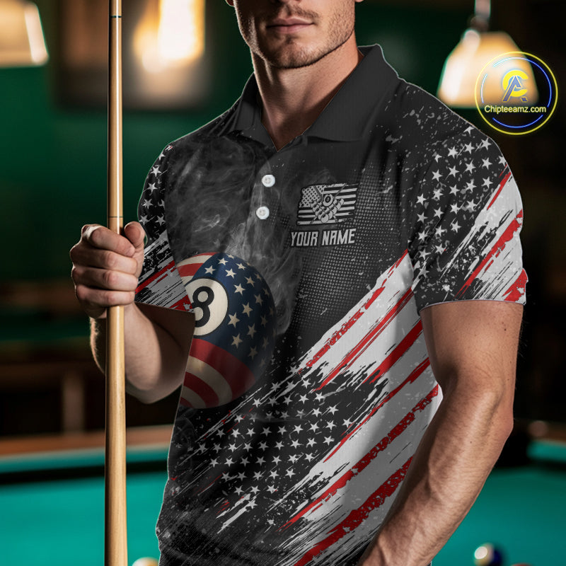 Personalized Grunge American Flag Men's Billiard Shirts Custom 8 Ball Pool Smoke Team Jerseys TDM4054