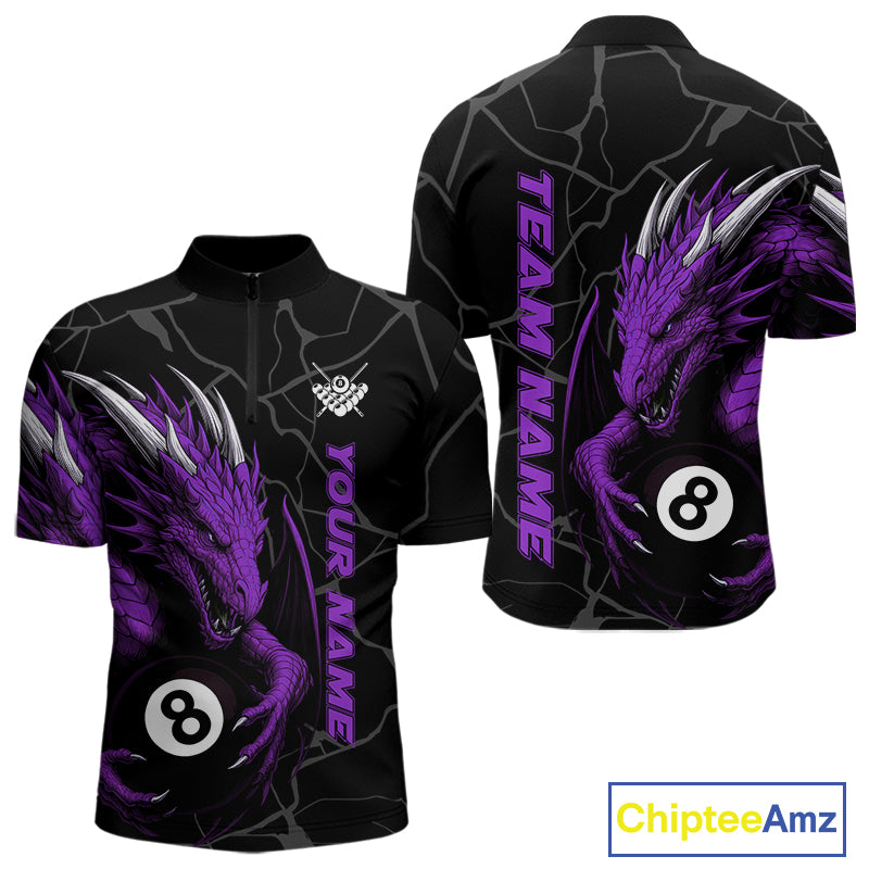Custom Men's Dragon Billiard Shirt – Black And Purple 8 Ball Pool Team Jersey Polo & Quarter Zip TDM4065