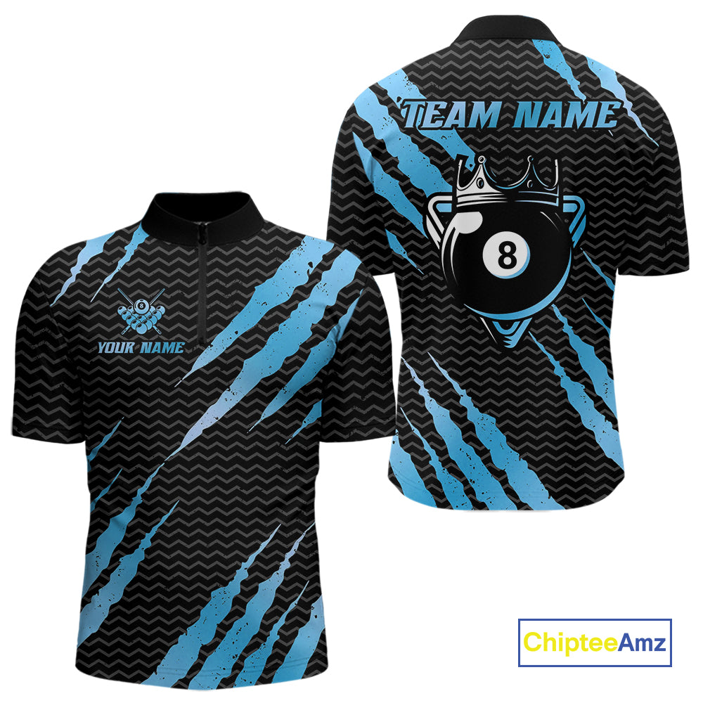 Black And Blue Scratch Billiard Shirts For Men Custom 8 Ball Crown Pool Team Jersey Polo & 1/4 Zip TDM4097