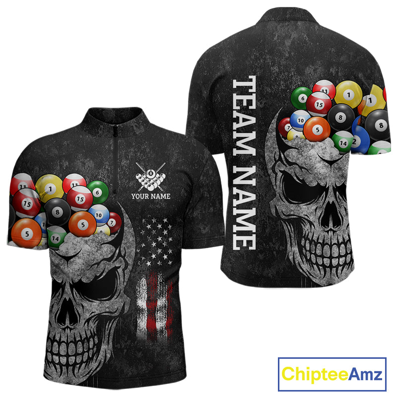 Personalized Grunge Skull Billiard Shirt For Men Custom Patriotic American Flag Pool Team Jerseys TDM4196