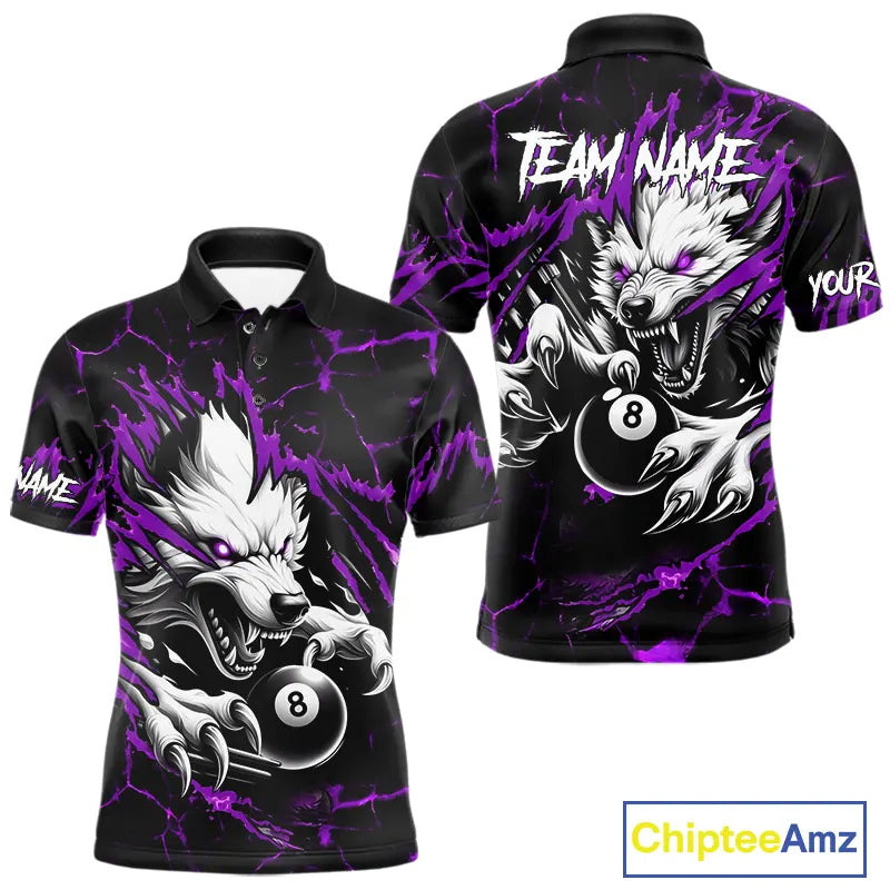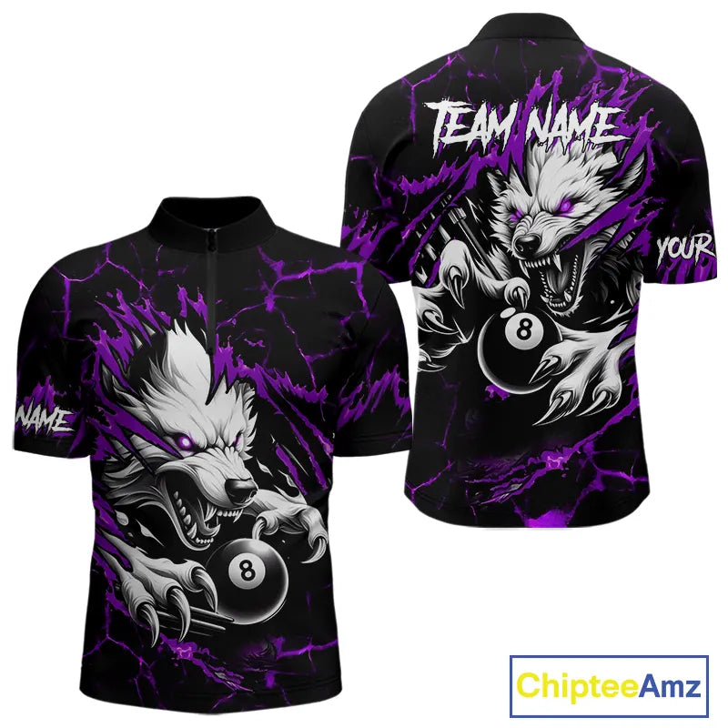 Personalized Thunder Lightning Wolf Billiard Shirts For Men Custom Billiard Team Jerseys |Purple TDM5467