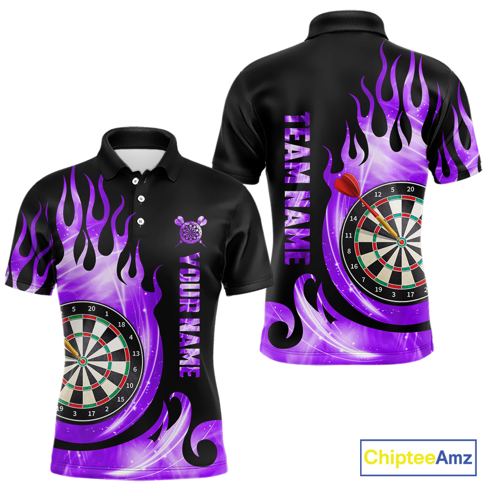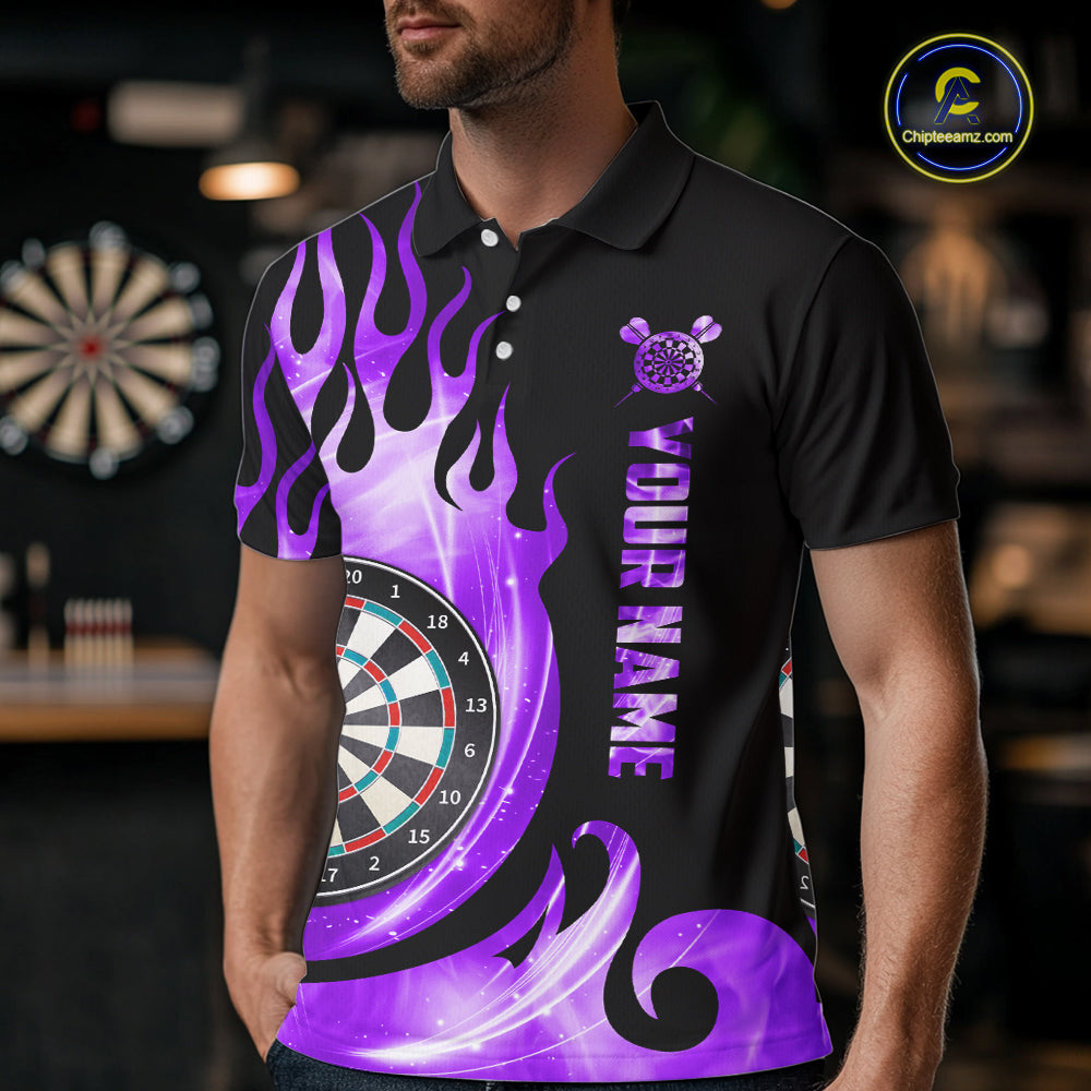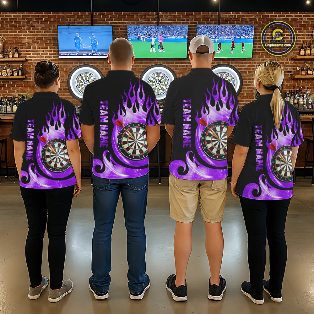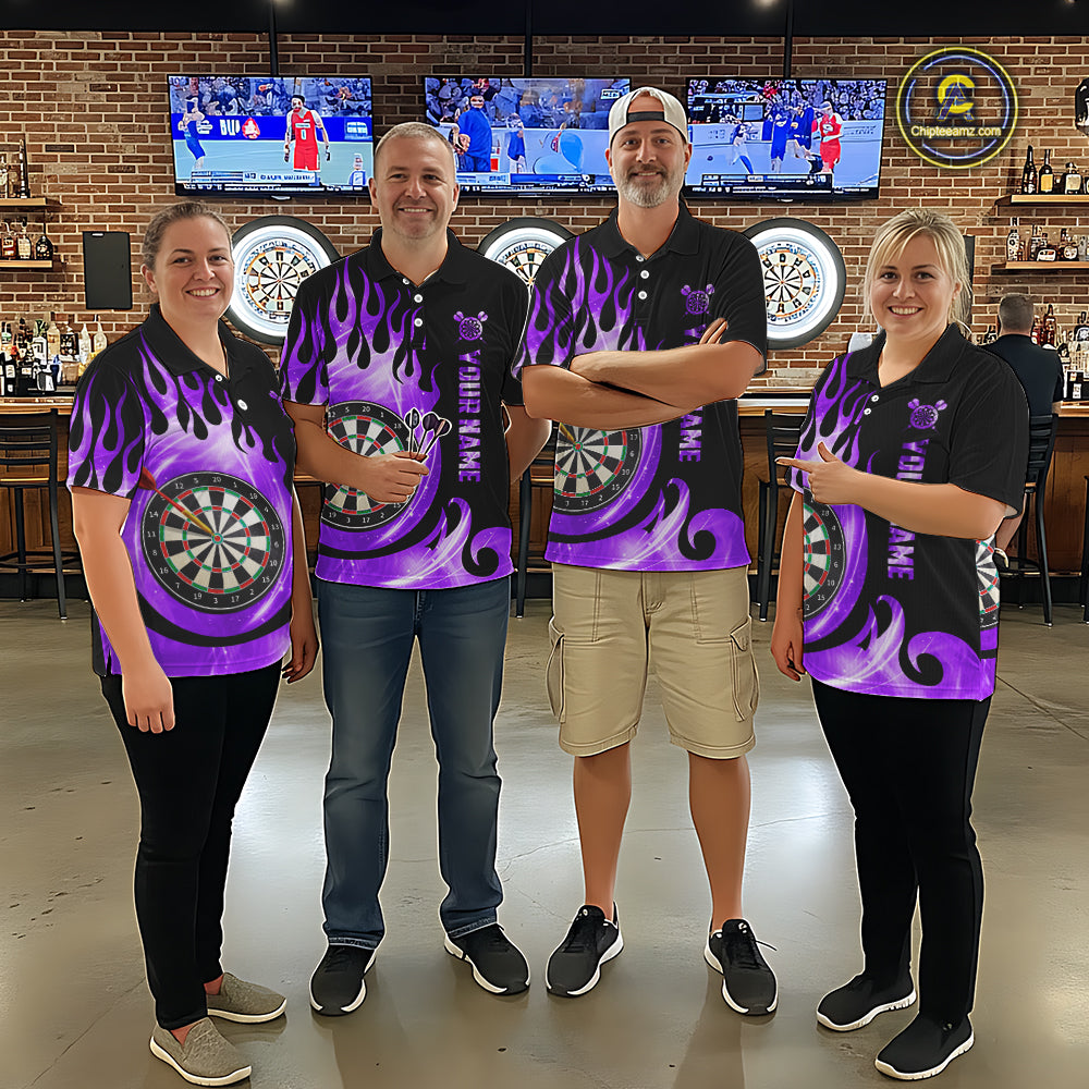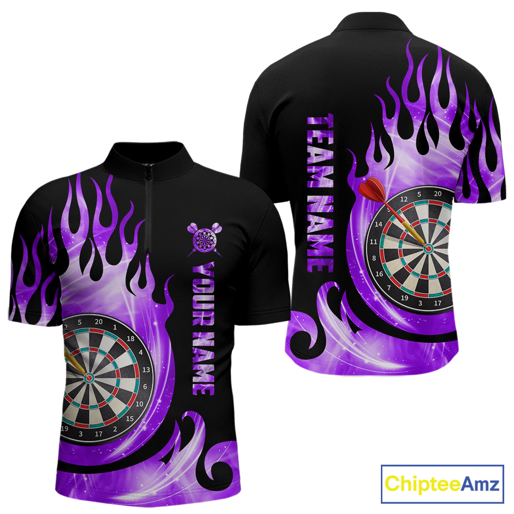 Black And Purple Custom Flame Light Darts Polo & 1/4 Zip For Men, Darts League Team Jersey TDM5480